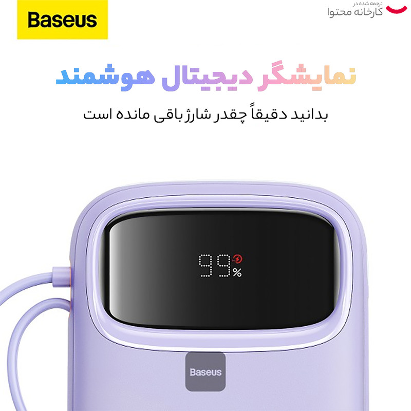 | مشخصات فنی | برای کابل Type-C داخلی: 5V ⎓ 2.4A ؛ 9V ⎓ 2A ؛ 12V ⎓ 1.5A برای کابل Lightning داخلی: 5V ⎓ 2.4A ؛ 9V ⎓ 2.22A برای پورت USB-A خارجی: 5V ⎓ 2.4A |