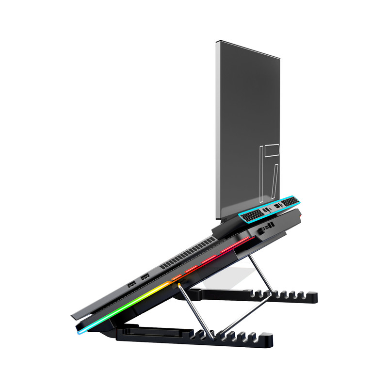| سایر توضیحات | دارای7 زاویه برای تنظیم ارتفاع - سرعت فن: 22۰۰ دور بر دقیقه - قابلیت تنظیم سرعت فن -دارای یک درگاه USB اضافی (با قابلیت انتقال دیتا)- دارای چراغ LED فن - کاملا بی صدا-دارای نوار RGB با قابلیت تغییر زنگ در 12 حالت-دارای پایه نگهدارنده موبایل |