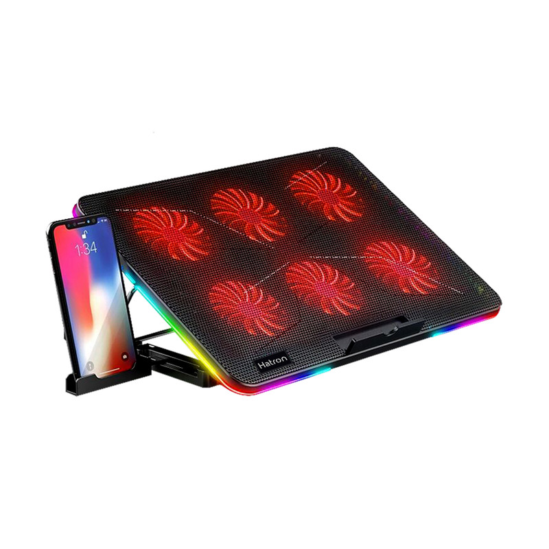 برند Hatron یکی از بهترین تولیدکنندگان لوازم جانبی کامپیوتر و لپتاپ در ایران است. پایه خنککننده لپتاپ هترون مدل HCP131 از جمله مدل های گیمینگ این برند دارای 6 عدد فن خنککننده با سرعت گردش فن 2200±10% دور در دقیقه است. بدنه ساخته شده از جنس ABS و فلز این مدل، مقاومت در برابر فشار و آسیبهای احتمالی را تضمین میکند. همچنین امکان تنظیم ارتفاع از طریق پایه تعبیه شده در 7 سطح مختلف وجود دارد. بهرهمندی از 2 پورت USB با قابلیت انتقال دیتا محدودیتهای استفاده از پورتهای لپتاپ را جبران میکند.HCP131 مناسب برای انواع لپتاپها با سایز تا 17 اینچ است و با تعبیه چراغ LED روی فن و نورپردازی داخلی و نوار LED با 12حالت نوردهی (RGB) در قسمت حاشیه کول پد جلوه بصری زیبایی ایجاد کرده است. همچنین با استفاده از دو کلید ولوم بر روی بدنه، میتوانید میزان سرعت و تنظیم حالت نوردهی را مطابق باسلیقه خود نور آن را تنظیم کنید. این مدل دارای یک عدد کابلUSB، پایه نگهدارنده موبایل و یک لبه نگهدارنده بهمنظور جلوگیری از سرخوردن و افتادن لپتاپ است. ولتاژ کاری 5 ولتDC، جریان کاری 0٫32±10% آمپر و توان مصرفی 4.25 وات است.