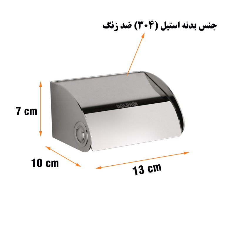 جای دستمال استیل دلفین . این محصول ساخته شده از استیل 304 است که ضد زنگ و ضد آب میباشد. استیل بدنه بسیار ضخیم و مقاوم است .نصب کالا توسط پیچ و رولپلاک انجام میشود که همراه محصول است.