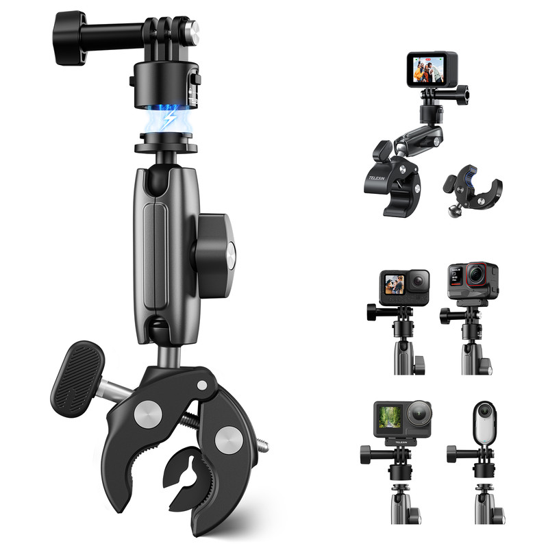 | ویژگی های فنی | برند معتبر TELESIN، مدل S3-HBM-01 دارای گیره سوپر کلمپ قدرتمند برای اتصال به میله، میز، سهپایه و سطوح مختلف قابلیت چرخش ۳۶۰ درجه جهت تنظیم زاویه دلخواه سازگار با دوربینهای ورزشی (GoPro، Insta360، DJI و …) و لوازم جانبی مختلف ساخته شده از آلیاژ فلزی مقاوم و پلاستیک با کیفیت بالا نصب سریع و آسان بدون نیاز به ابزار مناسب برای فیلمبرداری ورزشی، سفر، تولید محتوا و کاربری روزمره طراحی جمعوجور و سبک برای حمل راحت |
