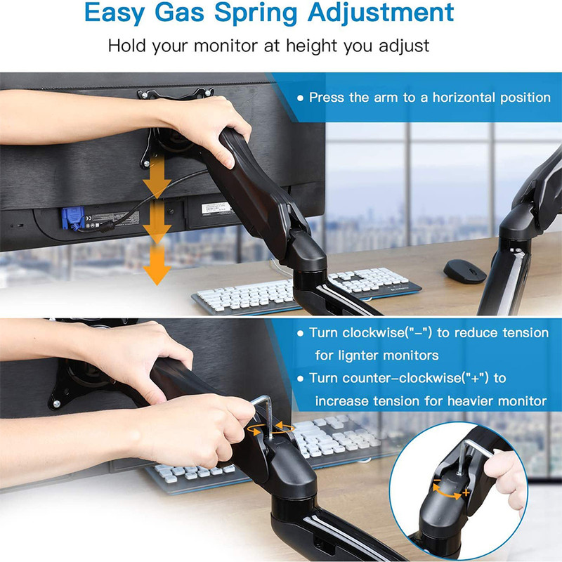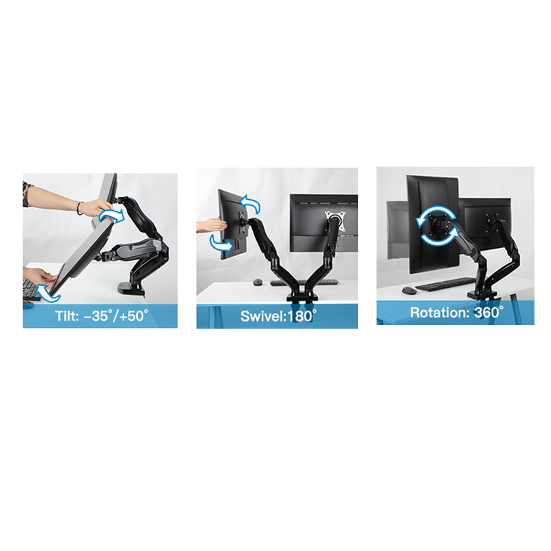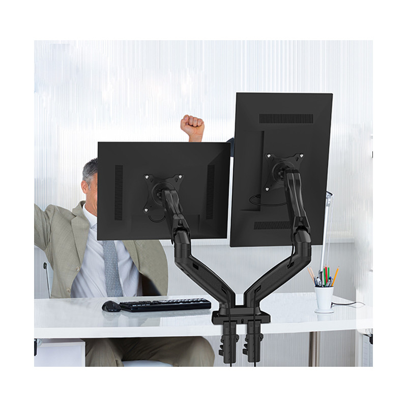 | مشخصات فنی | - تحمل وزن 2 تا 9 کیلوگرم در هرکدام از پایهها - پایه دوقلو هیدرولیکی ERGO با قابلیت چرخش 360 درجه - نصب همزمان دومانیتور روی یک پایه رومیزی - پشتیبانی از استاندارد VESA با ابعاد 75×75 و 100×100 - طراحی ارگونومیک برای راحتی هر نوع کاربر با قد و جنسیتهای متفاوت - قابل استفاده جهت تمامی برندهای مانیتور موجود در بازار از 17 تا 30 اینچ - مدیریت کابلهای برق در بدنه دستگاه - چرخش 15 درجهای به سمت پایین و 85 درجهای به سمت بالا - تنظیم فاصله دید و گردش صفحه نمایش بصورت عمودی و افقی |