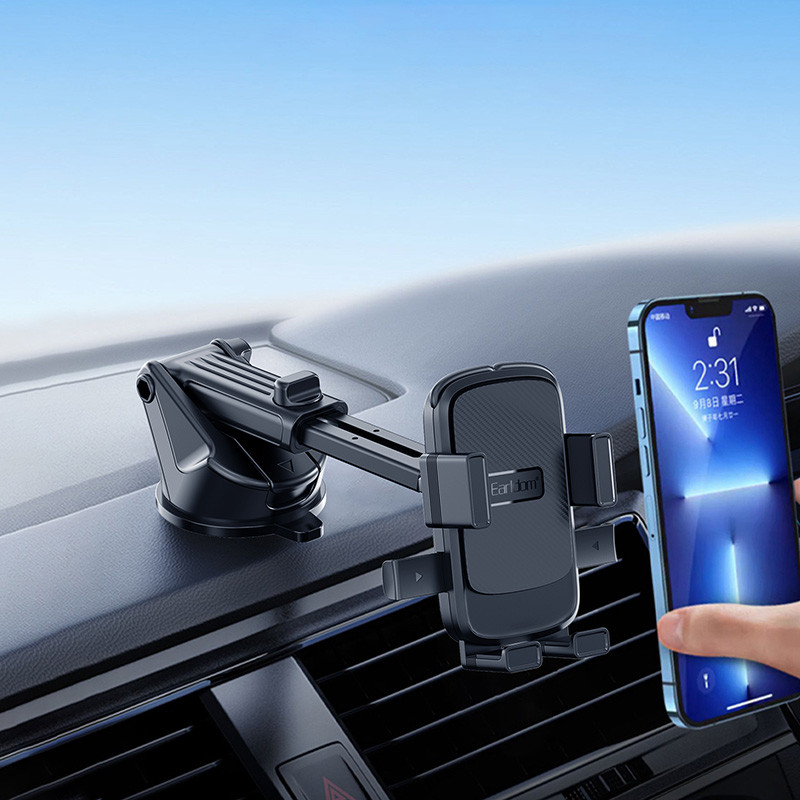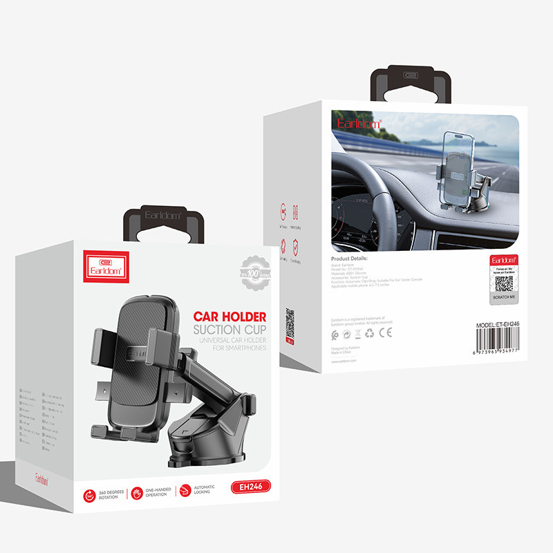 پایه نگهدارنده گوشی و تبلت ET-EH246، هولدری زیبا با بدنه ای بسیار محکم و مقاوم است. بدنه ی این هولدر از پلاستیک با کیفیت ساخته شده است. این پایه دارای دو بازویی است که گوشی موبایل را نگه میدارد.هنگام قراردادن گوشی روی پایه این بازوها به خوبی فیکس شده و کاملا ایمن گوشی را نگه میدارد. در قسمت پایین آن نیزبخش سومی وجود دارد که به ثبات بیشتر گوشی روی هولدر کمک می کند. دستگاه تنها با فشار یک انگشت باز می شود. در این محصول از اهرم قفل دو مرحله ای استفاده شده که باعث می شود سوکت شما در سطوح مختلف مورد استفاده قرار گیرد. اولین موقعیت قفل شده را می توان برای سطوح صاف مثل شیشه جلو اتومبیل و میز کار استفاده کرد، در حالی که موقعیت قفل دوم را می توان در سطوح بافتی انحنا استفاده کرد که ممکن است نیاز به چسبیدن بیشتر مانند داشبوردهای منحنی خودرو داشته باشد. همچنین این هولدر می تواند در زوایای مختلف بچرخد تا بهترین زاویه دید را برای راننده فراهم کند.