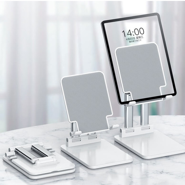| مناسب برای | جنس : Metal + silica gel +ABS وزن خالص : 725 گرم تنوع رنگی : سفید – مشکی تغییر ارتفاع از 15 تا 22 سانتی متر تغییر زاویه قرارگیری موبایل تا 85 درجه دارای دو پایه برای نگهداری گوشی و تبلت |