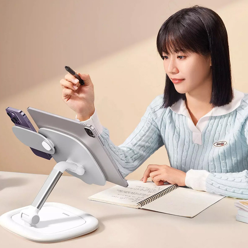 پایه نگهدارنده گوشی و موبایل بیسوس یک وسیله ی ایده ال برای افرادی است که استفاده مداوم از تلفن همراه و تبلت خود دارند. از دیگر قابلیت های این محصول میتوان به تاشو بودن آن اشاره کرد چرا که امکان حمل آن در سفر، محل کار و محیط بیرون از خانه را برای کاربر فراهم کرده و فضای کمی اشغال می کند. شما می توانید از پایه نگهدارنده گوشی موبایل و تبلت بیسوس مدل B10451501211-00 برای تماشای فیلم، طراحی و نقاشی، مطالعه، بازی کردن، مکالمه، تماس تصویری و ... استفاده نمایید. این هولدر علاوه بر گردش هوا که مانع از داغ شدن تبلت شما می شود، می تواند از آسیب هایی که در دراز مدت بر اثر استفاده از تلفن همراه برای شما ایجاد می شود نیز جلوگیری نماید.