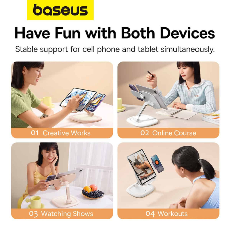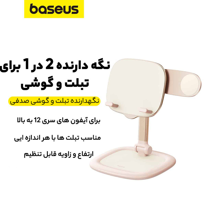 هر تبلتی را نگه می دارد - پایه پهن، تاشو و وزن دار و پدهای سیلیکونی، پایداری عالی را تضمین می کند.نگهدارنده تلفن مغناطیسی اضافی - به لطف نگهدارنده مغناطیسی می توانید تبلت و تلفن خود را روی هولدر قرار دهید! سازگار با آیفون 12 و بالاتر