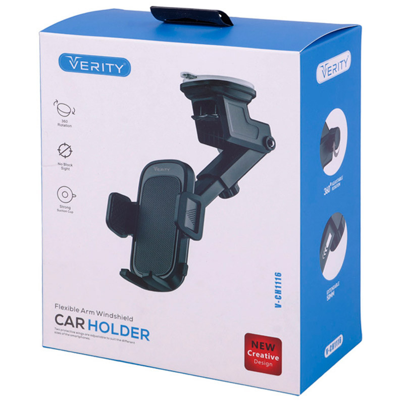 | سایر توضیحات | پایه نگهدارنده گوشی موبایل وریتی مدل V-CH1116 مجهز به پایه مکنده جهت اتصال به داشبورد، شیشه و سایر سطوح صاف، امکان تنظیم ارتفاع و زاویه بازو توسط کلید چرخشی تعبیه شده بدنه ساخته شده از جنس پلاستیک، مجهز به شیار عبور کابل جهت سهولت در استفاده از تلفن همراه هنگام شارژ شدن امکان چرخش براکت تا 360 درجه به منظور سهولت بیشتر هنگام استفاده، سازگار با گوشی های سایز 4 الی 5.5 اینچ برخورداری از دو گیره در طرفین براکت و یک گیره در قسمت زیرین جهت نگهداری گوشی موبایل |