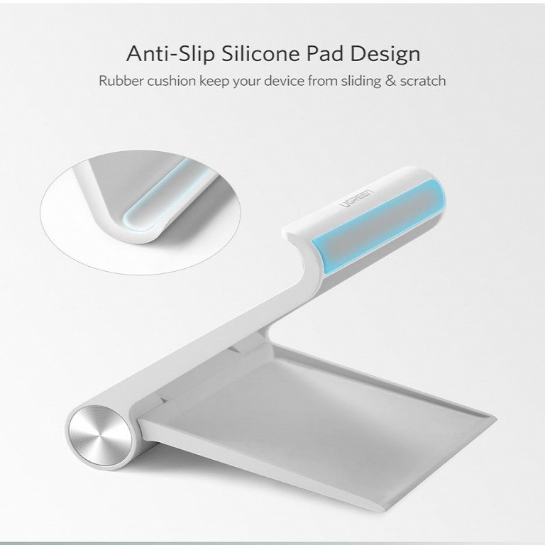 همچنین ساختار پایه نگهدارنده رومیزی موبایل برند Ugreen مدل LP115 به گونه ای است که مشکلی برای عبور کابل شارژ ایجاد نکرده و بنابراین در حالت قرارگیری مختلف، امکان شارژ گوشی وجود خواهد داشت. قسمت زیرین محصول نیز به گونه ای است که با سطوح اصطکاک مناسب داشته و اگر آن را روی میزی صاف بگذارید دچار لغزش نمیشود.