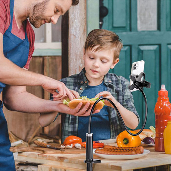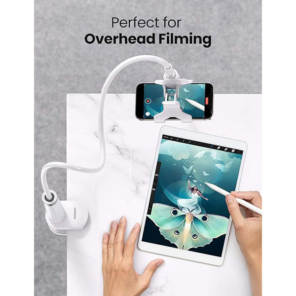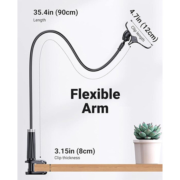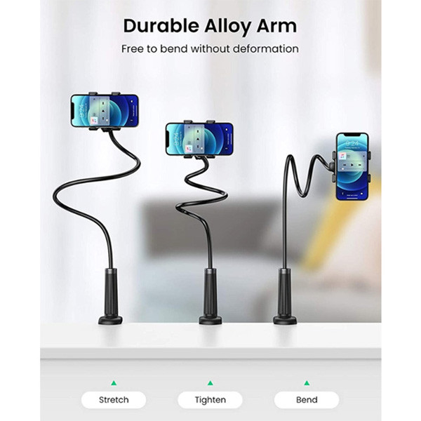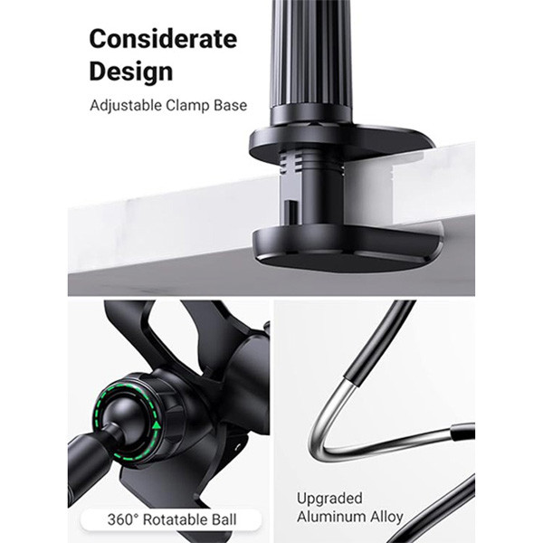 پایه نگهدارنده گوشی مناسب تخت و میز یوگرین مدل LP113-80906، هولدری زیبا با بدنه ای بسیار محکم و مقاوم و بسیار کاربردی است. این پایه دارای یک بازویی شلنگی بسیار محکم به طول 90 سانتی متر است و جنس داخلی پایه شلنگی آن از آلومینیوم میباشد و تحمل وزن تا 300 گرم را دارد که گوشی موبایل از 4 اینچ تا 7.2 اینچ را به راحتی نگه میدارد. سری نگهدارنده این محصول کلیپسی است که استفاده از آن را راحتتر میکند و همچنین داخل لبههای گیره آن حاوی محافظ برای جلوگیری از هرگونه آسیب به گوشی همراه است و هنگام قراردادن گوشی روی پایه به خوبی فیکس شده و کاملا ایمن گوشی را نگه میدارد. در قسمت پایین آن گیرهی مخصوص برای اتصال به لبه میز، تخت و ... تعبیه شده که قابل تنظیم میباشد. دارای قابلیت چرخش 360° است که به کاربر امکان تنظیم زاویه دید دلخواه را میدهد. پایه نگهدارنده گوشی مناسب تخت و میز یوگرین مدل LP113-80906، بهترین انتخاب برای فیلم دیدن در تخت و یا فیلم و عکس گرفتن از نحوه کشیدن نقاشی یا ... است.