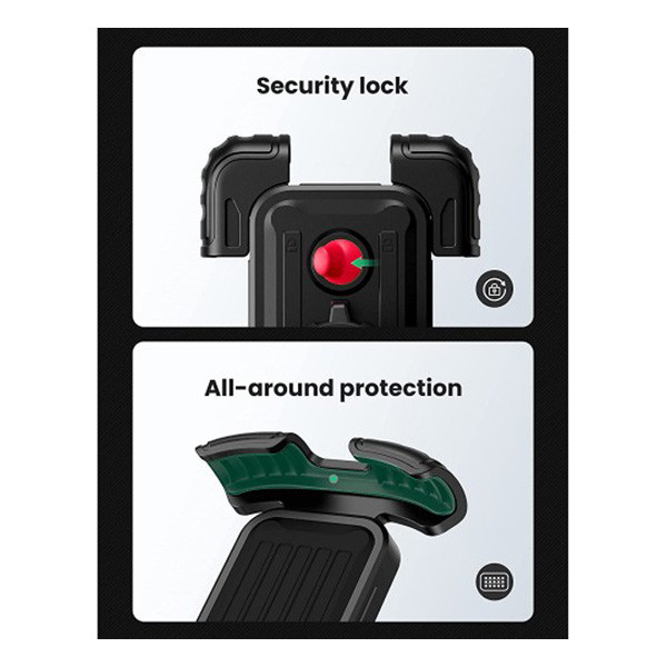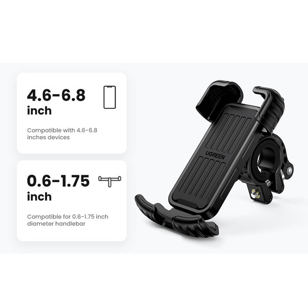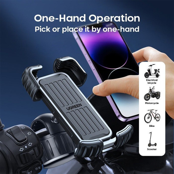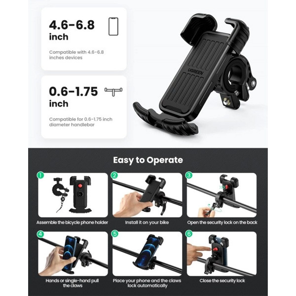 پایه نگهدارنده موبایل مناسب موتور و دوچرخه یوگرین مدل LP494-60548، مخصوص تمامی سایزهای موبایل از 4.6 تا 6.8 اینچ میباشد. در طراحی پشت این نگه دارنده یک قفل امنیتی به کار رفته که از افتادن گوشی همراه در سرعت بالا و لرزشهای زیاد جلوگیری میکند.دارای قابلیت چرخش 360° میباشد و نصب بسیار آسانی دارد. این نگهدارنده گوشی همراه شمارا ار هر چهار طرف به خوبی نگهمی دارد و لایه سیلیکونی آن از آسیب رساندن به گوشی موبایل شما جلوگیری میکند. پایه نگهدارنده موبایل مناسب موتور و دوچرخه یوگرین مدل LP494-60548، مناسب ترین انتخاب موجود در بازار میباشد.