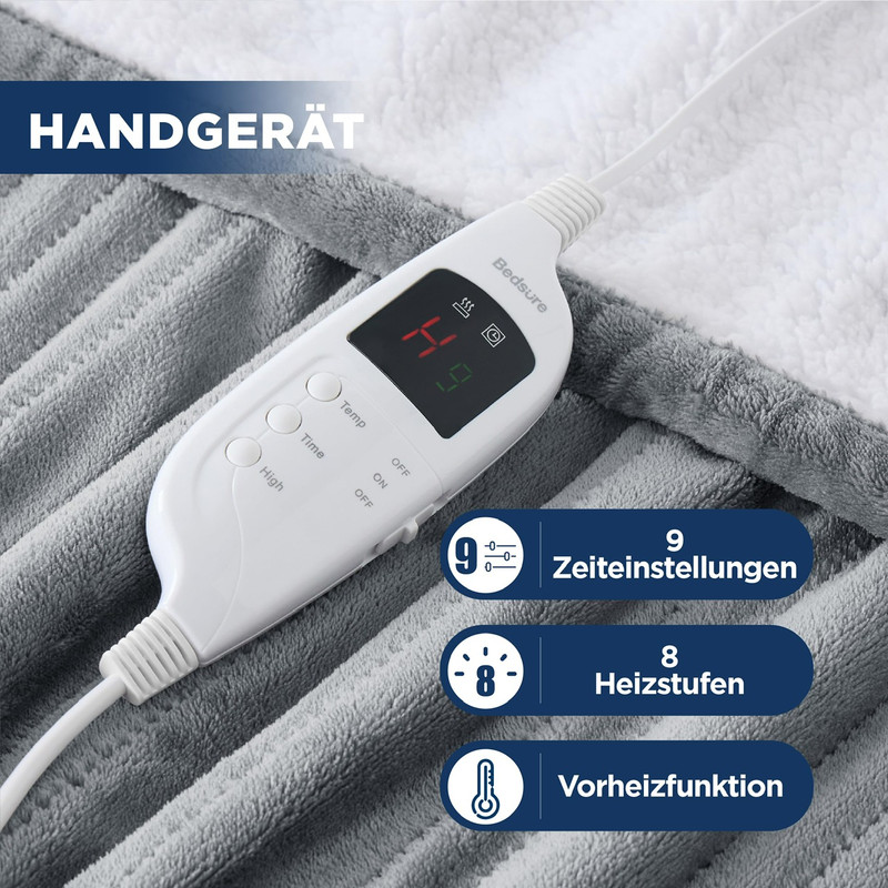 گرمای سریع، یکنواخت و ایمن را تجربه کنید. این پتوی برقی دارای 8 تنظیم حرارتی و 9 تنظیم زمان است و برای راحتی آماده و شخصی می توان آن را از قبل گرم کرد.خاموشی خودکار 9 ساعته استاندارد از گرم شدن بیش از حد پتو و خطرات احتمالی جلوگیری می کند، بنابراین می توانید آرامش داشته باشید و از گرما در آرامش لذت ببرید.با کنترل سیمی می توانید به راحتی و به راحتی پتو گرمایشی خود را روی دما و تایمر دلخواه تنظیم کنید.روکش فلانل مخملی 220GSM و شرپا ممتاز 200GSM تجربه ای نرم و گرم را ارائه می دهند و پتوی برقی را به گزینه مناسبی برای هدیه برای موقعیت های خاص تبدیل می کنند.با این پتوی برقی Bedsur در خانه، دفتر کار، اتاقک ها، در سفرهای ماشینی گرمای اضافی مورد نیاز خود را دریافت کنید