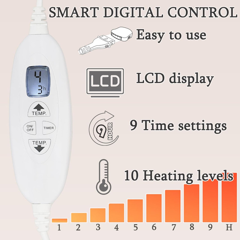 | سایر توضیحات | طراحی فوق العاده بزرگ: ابعاد این پتوی گرمایشی فوق العاده بزرگ 180*130 سانتی متر است که می توانید به راحتی با دیگران از آن لذت ببرید. این پتوی گرمایشی اندازه مناسبی برای استفاده روی مبل، دفتر، تختخواب است. در هوای سرد، اگر می خواهید روی مبل تلویزیون تماشا کنید یا در دفتر کار کنید، می توانید بدون احساس سرما از گرما لذت ببرید. طراحی برگشت پذیر: پتوی برقی از فلانل نرم و ترمه شرپا ساخته شده است، بسیار ضخیم اما به اندازه کافی گرم است. ما کل پدهای گرمایش را به دوخت چند لایه ارتقا دادیم که پایدارتر است. پتوهای برقی را نه تنها در زمستان می توان استفاده کرد، بلکه پارچه نرم آن را می توان به عنوان پتوهای معمولی در بهار و پاییز استفاده کرد که بسیار مقرون به صرفه است. گرما: طول کل سیم گرمایش 27.2 متر است، سیم های گرمایشی متعدد به طور مساوی در پتوی گرمایشی توزیع شده اند و دما به سرعت افزایش می یابد. در مقایسه با پتوهای معمولی، شما می توانید قبل از رفتن به رختخواب به سرعت گرما را احساس کنید و وجود سیم های گرمایشی را در داخل آن احساس نمی کنید و به شما امکان می دهد یک خواب عالی داشته باشید. تنظیمات چندگانه: پتوی پرتابی با گرمایش الکتریکی دارای تنظیمات گرمایش 1-10، تنظیم زمان 1-9 ساعت است. خاموش شدن تایمر، این دو عملکرد را می توان به طور جداگانه تنظیم کرد. می تواند نیازهای مختلف، دما و زمان مناسب شما را برآورده کند . کنترلر هوشمند: نمایشگر LCD به راحتی قابل خواندن است، گرمایش/زمان بندی در همان زمان قابل مشاهده است، بسیار بصری و آسان برای استفاده برای افراد در سنین مختلف. پرتاب گرم شده دارای محافظ گرمای بیش از حد است، بنابراین می توانید در حین استفاده از آن مطمئن باشید .قابل شستشو با ماشین لباسشویی و مراقبت آسان: کنترل از راه دور و کابل کاملاً قابل جدا شدن هستند، فقط مطمئن شوید که کنترلر را قبل از شستشو جدا کرده و خارج کنید. آن را در ماشین لباسشویی قرار دهید و به آرامی با آب زیر 30 درجه سانتی گراد بشویید. پتوهای برقی ما تست شده اند و تمام استانداردهای ایمنی جهان را برآورده می کنند، بنابراین دارای علائم UKCA و CE هستند. |