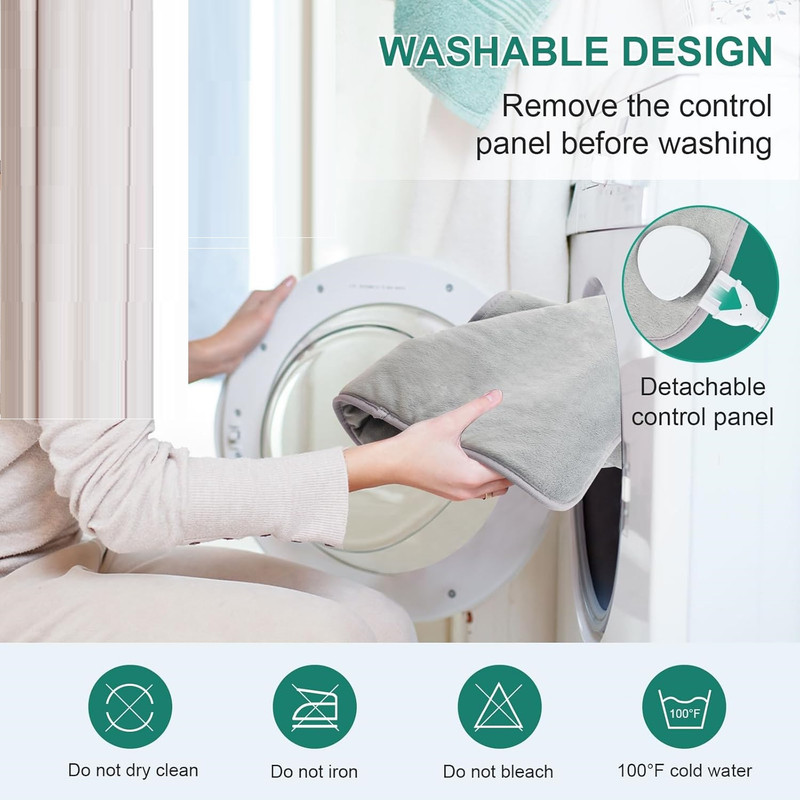 تمیز کردن آسان و قابل شستشو با ماشین لباسشویی: اتصال برق پد گرمایشی ضد آب است، وقتی دوشاخه برق پد گرمایشی از پنل کنترل جدا شود، پدهای گرمایشی را می‌توان در ماشین لباسشویی شست، بنابراین نیازی به تمیز کردن آنها نیست. مهم: سیم برق و کنترل‌ها را نباید در ماشین لباسشویی قرار داد. پس از تمیز کردن پدهای گرمایشی، قبل از استفاده باید خشک شوند.
