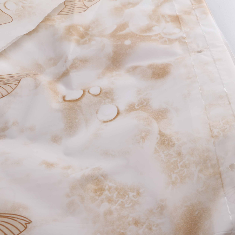 پرده حمام یکی از عناصر دکوراتیو است که باید پوشش مناسبی را ایجاد کند. برای سرویس بهداشتی و حمام از والان و تور استفاده نمی شود. برخلاف پرده اتاق پذیرایی انواع طرح های سنتی و کلاسیک در دستشویی و حمام جایی ندارند. فضای سرویس های بهداشتی، حمام و دستشویی با آب و رطوبت و نم در ارتباط است. از طرفی شوینده ها و سفید کننده ها در حمام استفاده می شوند. وجود شوینده ها و رطوبت را دست کم نگیرید. مواد ضد آب در تهیه و ساخت پرده های حمام مناسب تر هستند. بهترین جنس برای پرده حمام پارچه های پلاستیکی از جنس پلی استر هستند که آب و رطوبت را به خود جذب نمیکنند و تغییر رنگ نمیدهند. دوام این نوع پارچه ها بسیار بالاست وحتی میتوان آن را با ماشین لباسشویی و یا وایتکس شستشو داد. پرده حمام پیسو از جنس 100 درصد پلی استر ساخته شده و از حلقه های پلاستیکی برای آویز شدن استفاده شده است.جنس پارچه از مواد درجه یک کاملا بدون بو تهیه شده است.