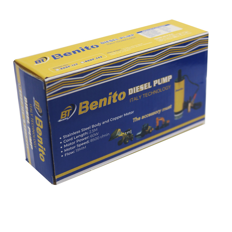 پمپ گازوئیل کش 12 ولت بنیتو، یک محصول حرفهای برای خودروهای دیزلی است. این پمپ با نیروی برق خودرو (12 ولت) کار میکند و برای انتقال سوخت گازوئیل از مخزن به موتور خودرو استفاده میشود. با استفاده از این پمپ قوی و با دوام، میتوانید به راحتی سوخت را در خودروی خود پمپ کنید و از مشکلات ناشی از کمبود سوخت در مسافرتهای بلند مدت جلوگیری کنید.