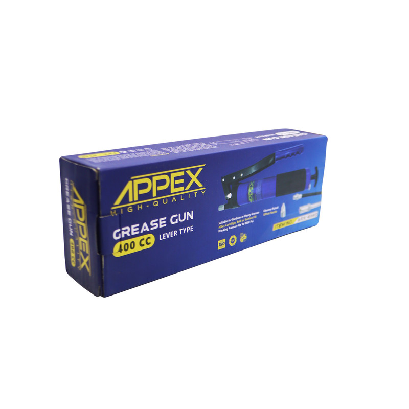 | سایر توضیحات | - پمپ گریس اپکس - از گریس پمپ دستی برای روانکاری ها با حجم کم تر استفاده می شود. - خروجی بالا مناسب برای گریس کاری مداوم و با حجم بالا - فشار : ۳۰۰۰ PSI - حجم 400 میلی لیتر ( 400 سی سی ) - توان تخليه : يک گرم در هر بار فشردن اهرم - جنس کلگی : آلومینیوم دایکاست همراه با پیچ تخلیه هوا - کیفیت بالا - دارای 2 عدد نازل فلزی و پلاستیکی به طول 15 و 30 سانتی متر |