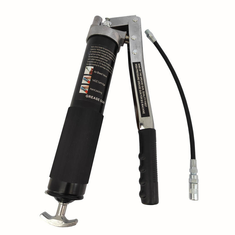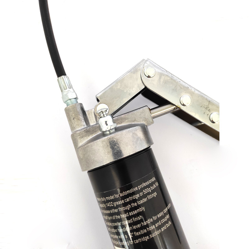 پمپ گریس دستی کاتوو 400 سی سی : گریس پمپ دستی 400 سی سی ابزاری مورد استفاده در بسیاری از مراکز تعمیرگاهی کوچک و بزرگ است. این محصول ساخت شرکت کاتوو می باشد که دارای کیفیت عالی ساخت و کاربردی می باشد، این محصول از نظر ظاهری و ساختار فیزیکی دارای اتصالات هیدرولیکی و مکانیکی از استحکام بالایی برخوردار است که میتوان به راحتی و با بالا و پایین بردن دسته گریس پمپ، گریس را با فشار مناسبی تزریق کرد. روانکاری قطعات متحرک در اکثر خودروها و دستگاه های صنعتی از موارد توصیه شده است. این کار علاوه بر افزایش طول عمر قطعات متحرک، در برخی از دستگاه ها و بخش های مختلف خودرو امری مهم به جهت عملکرد درست قطعات به شمار می رود. استفاده از گریس پمپ دستی کاتوو راحت بوده و طی مدت زمان کوتاه می توان گریس پمپ را شارژ کرده و آن را آماده اجرای عملیات کرد. اتصالات هیدرولیک و مکانیک این گریس پمپ که از استحکام بالایی نیز برخوردار است، به راحتی و با بالا و پایین بردن دسته گریس پمپ، گریس را با فشار مناسبی تزریق می کند.