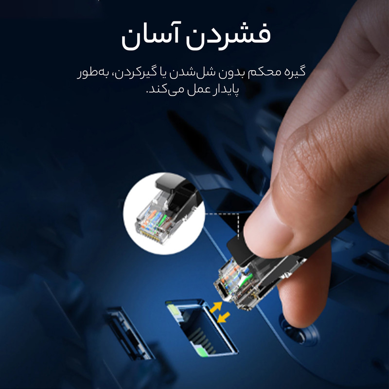 کابل شبکه با کیفیت بالا از برند معتبر Ugreen برای اتصالات متقاطع بین یک کامپیوتر و یک سوئیچ، روتر یا پریز مشترک طراحی شده است. این کابل با دقت از مواد با کیفیت بالا ساخته شده است. انتهای ویژه پلاگ آن از خرابی ناشی از انحناء مکرر محافظت میکند. پلاگ قوی آن ظاهری شیک و مدرن دارد.