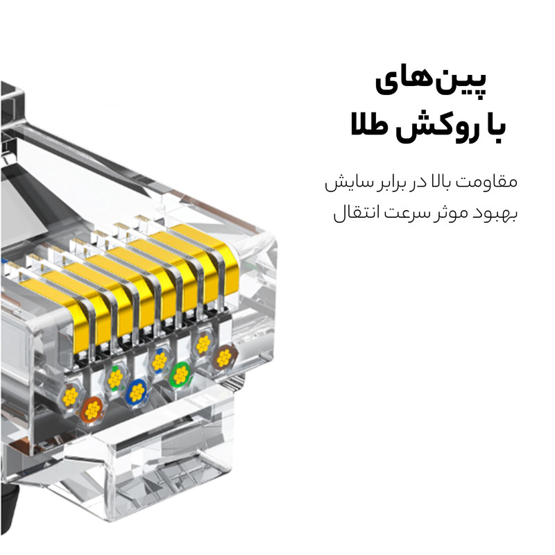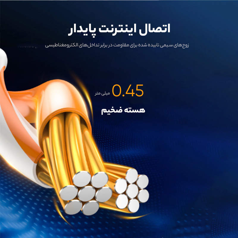 | مشخصات فنی | xUTP xConductor: 26AWG Copper Clad Aluminum xConnector Type: RJ45 xConnection method: 568B xEthernet Speed: 1000Mbps xChannel Bandwidth: 250MHz xStranding method: 8-core twisted pair |