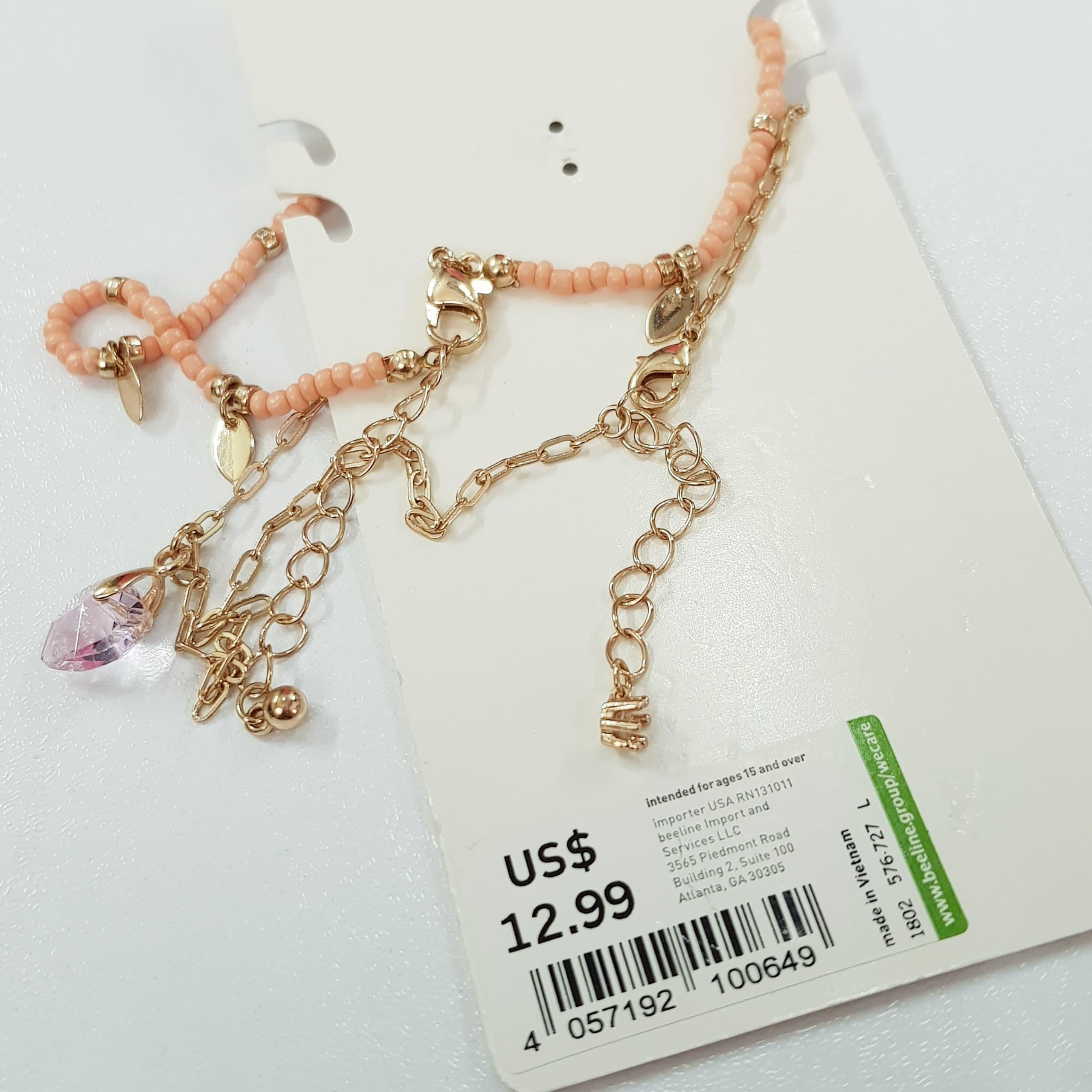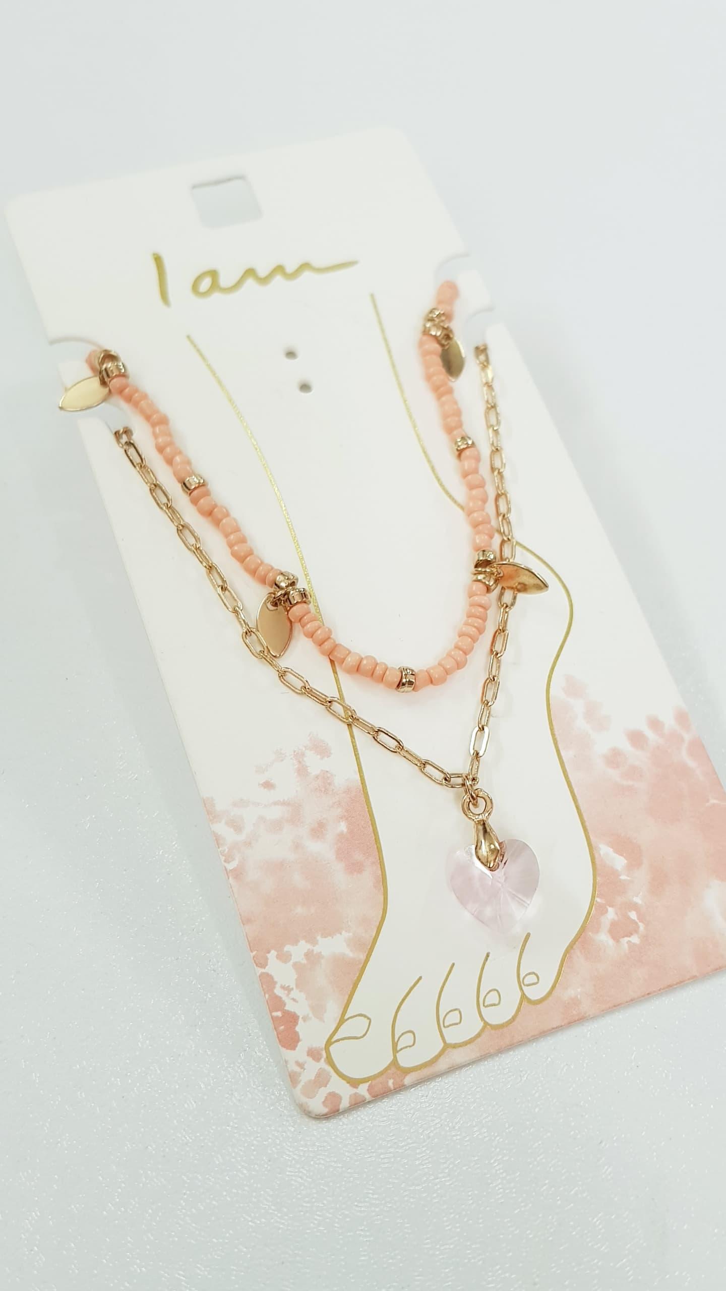 پک دو تایی پابند طلایی آویز قلب کریستالی صورتی ، دارای دو قفل مجزا ، فری سایز ، کار بسیار زیبا و با کیفیت رنگ ثابت و ضد حساسیت برند iam تحت لیسانس آمریکا
