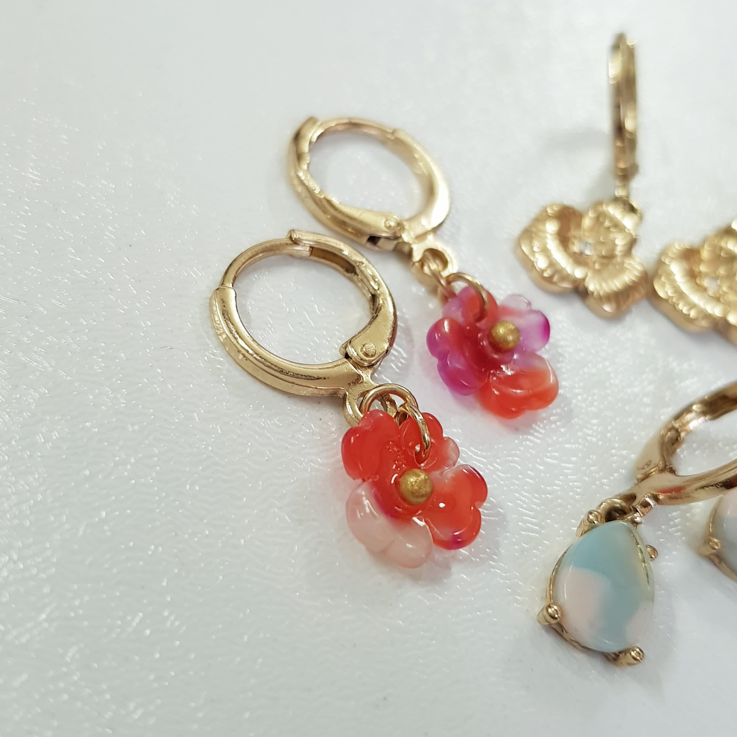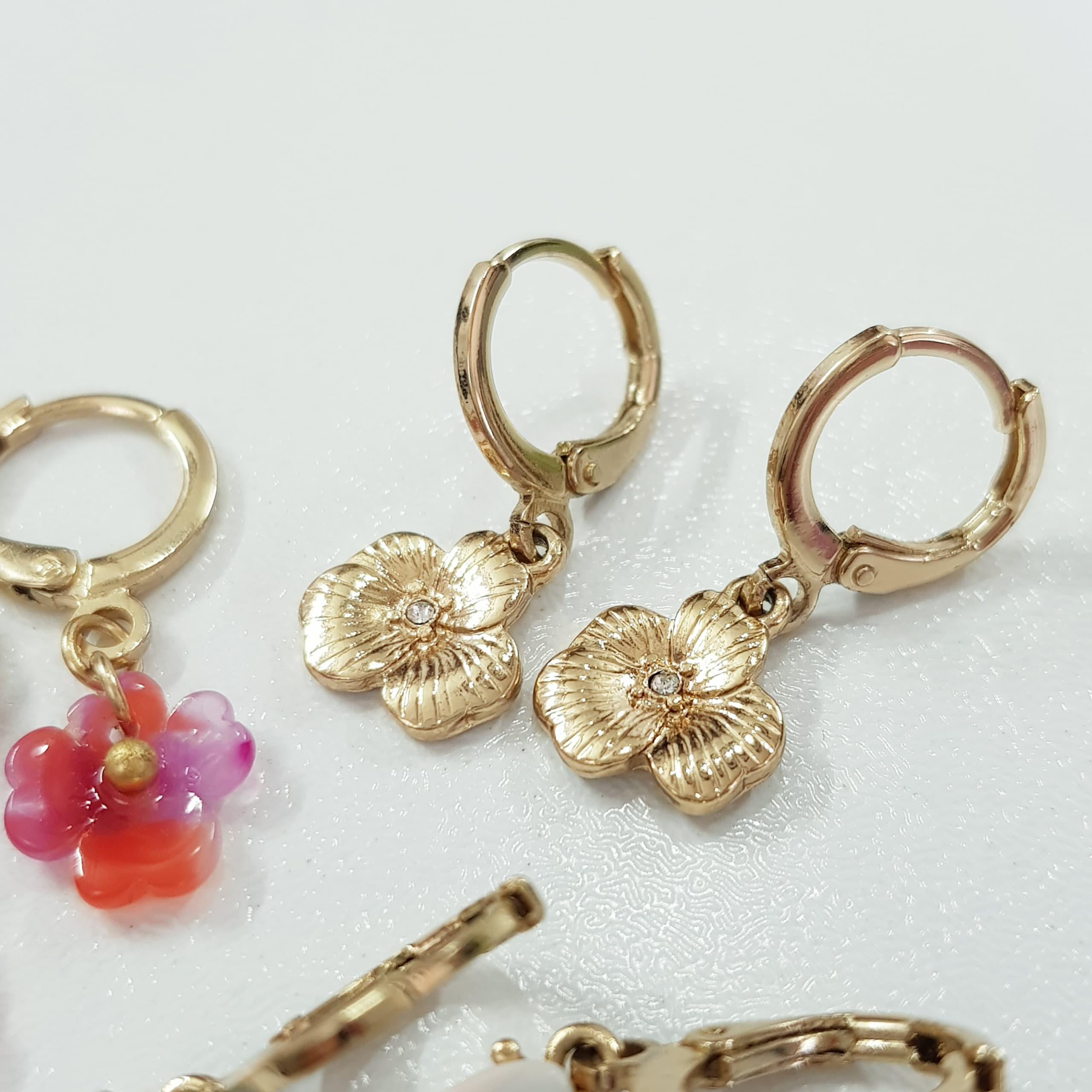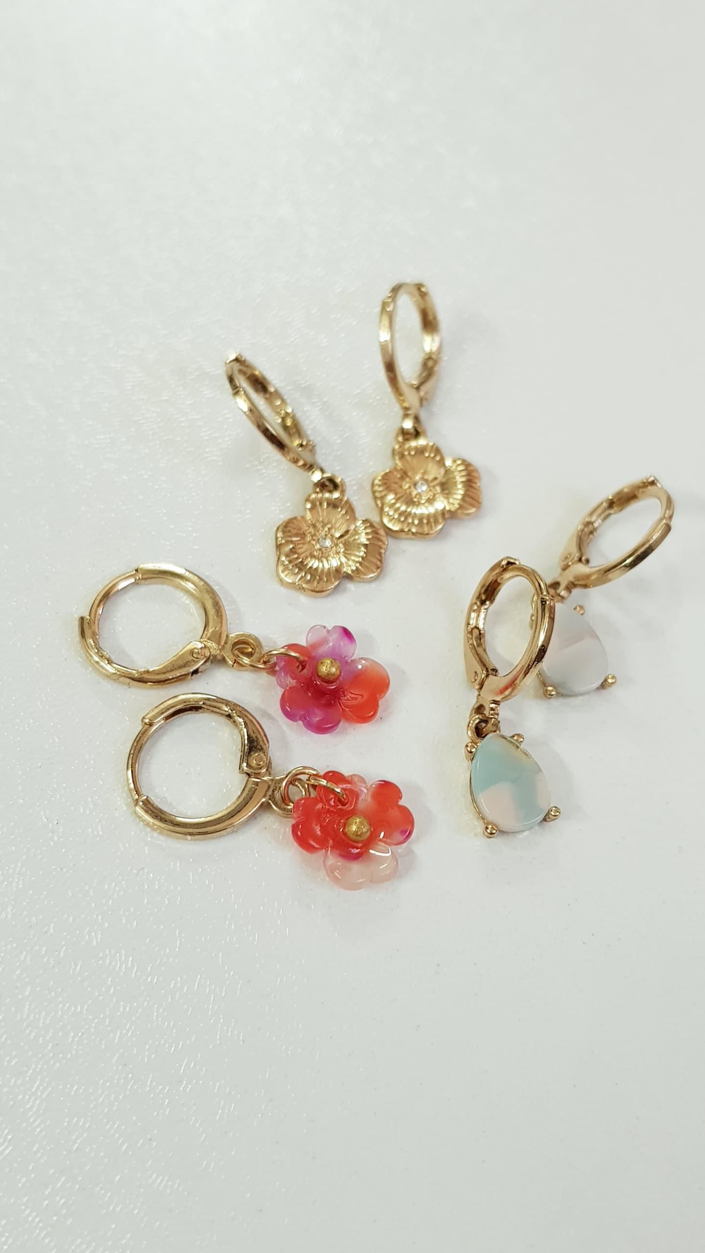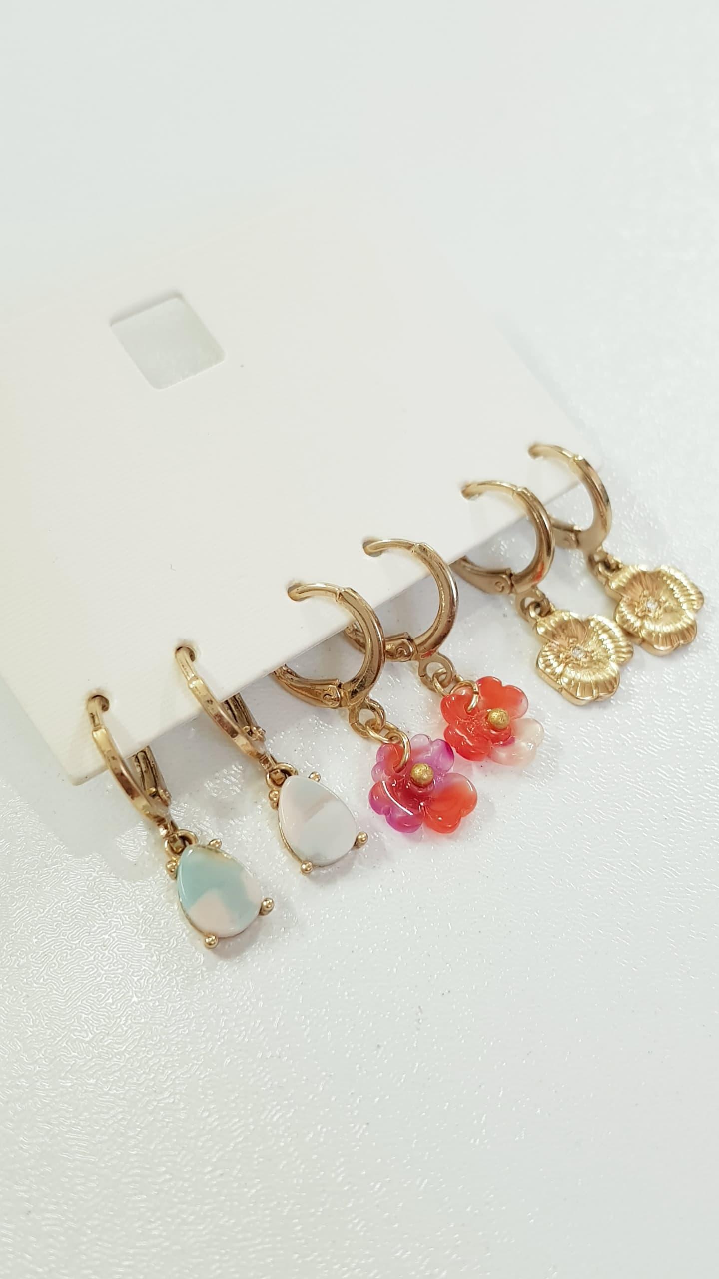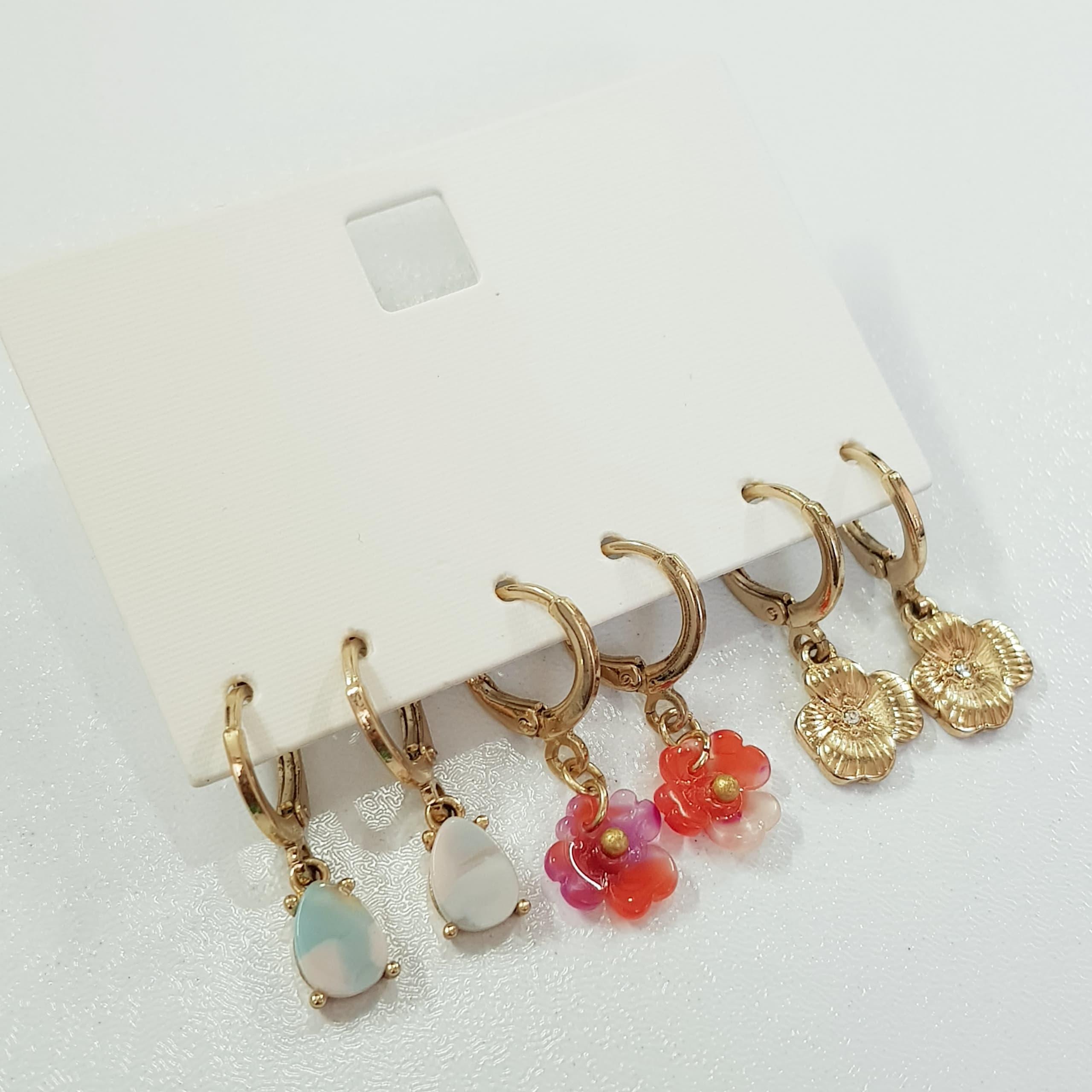 پک سه جفتی گوشواره طلایی قفلی آویز شکوفه و سنگ طبیعی ، کیفیت عالی ، زیبا و کیوت رنگ ثابت و ضد حساسیت برند Accessories تحت لیسانس آلمان