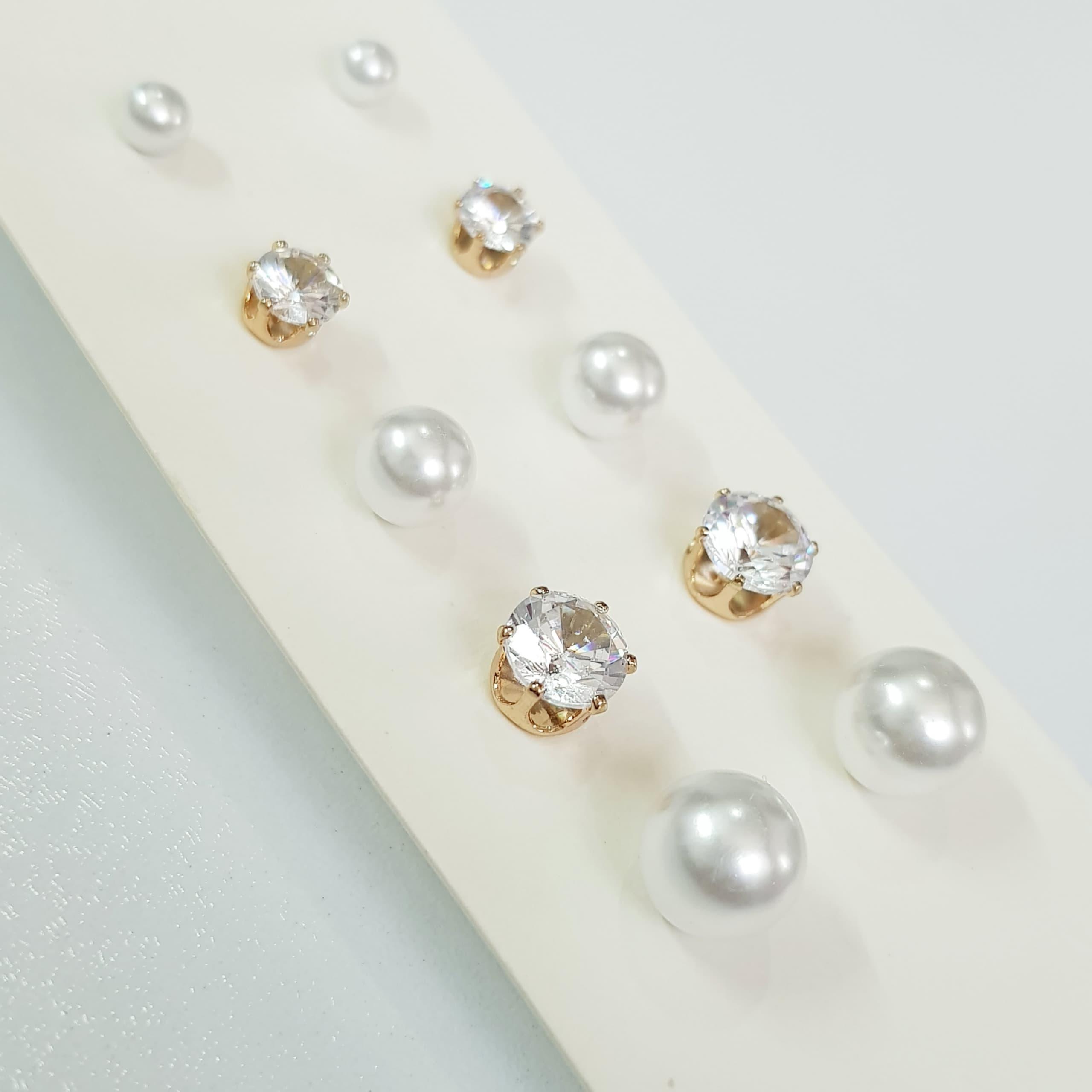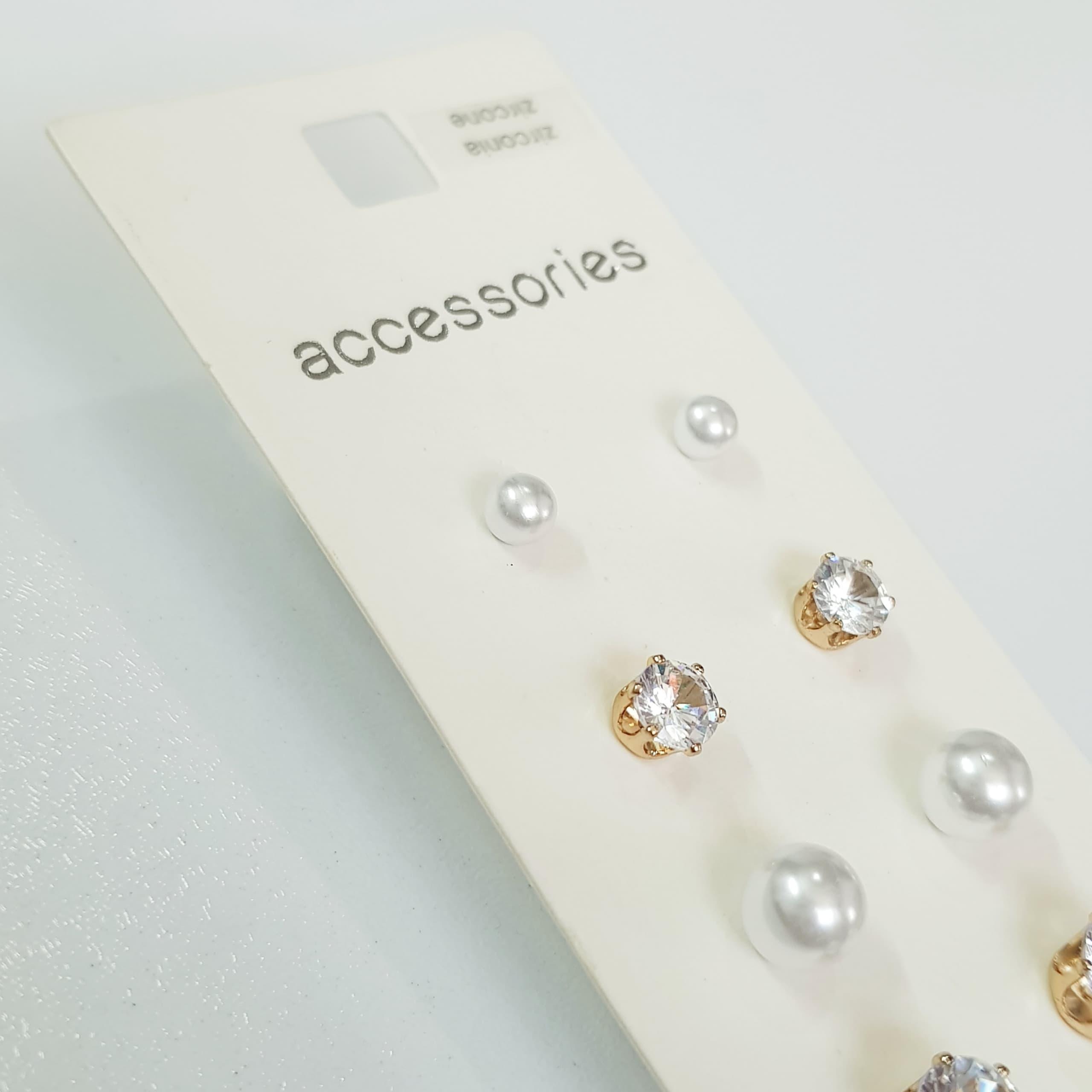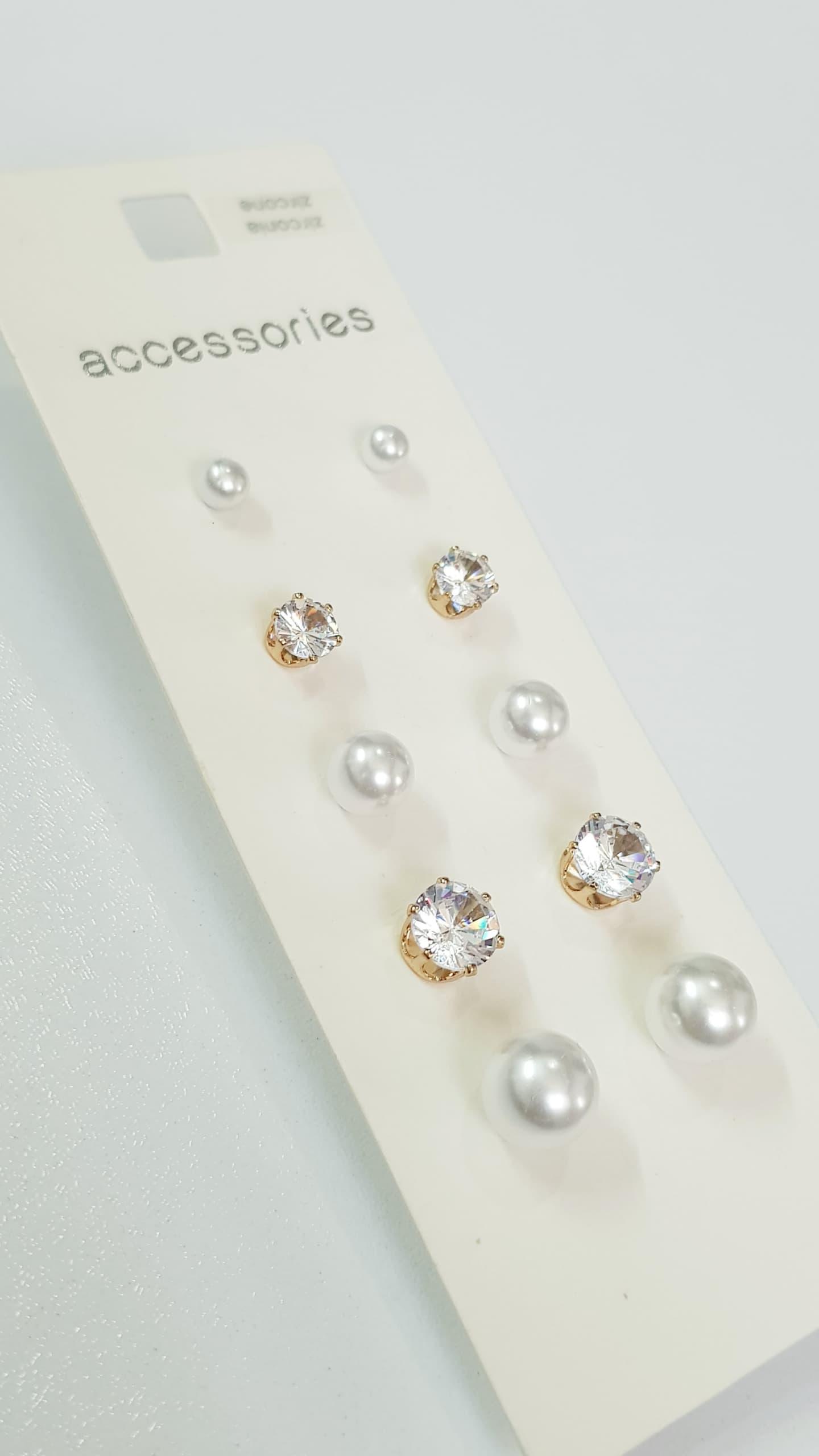 پک پنج جفتی اقتصادی گوشواره گلگوش نقره ای سنگ زیرکنیا و مروارید رنگ ثابت و ضد حساسیت برند iam تحت لیسانس آمریکا