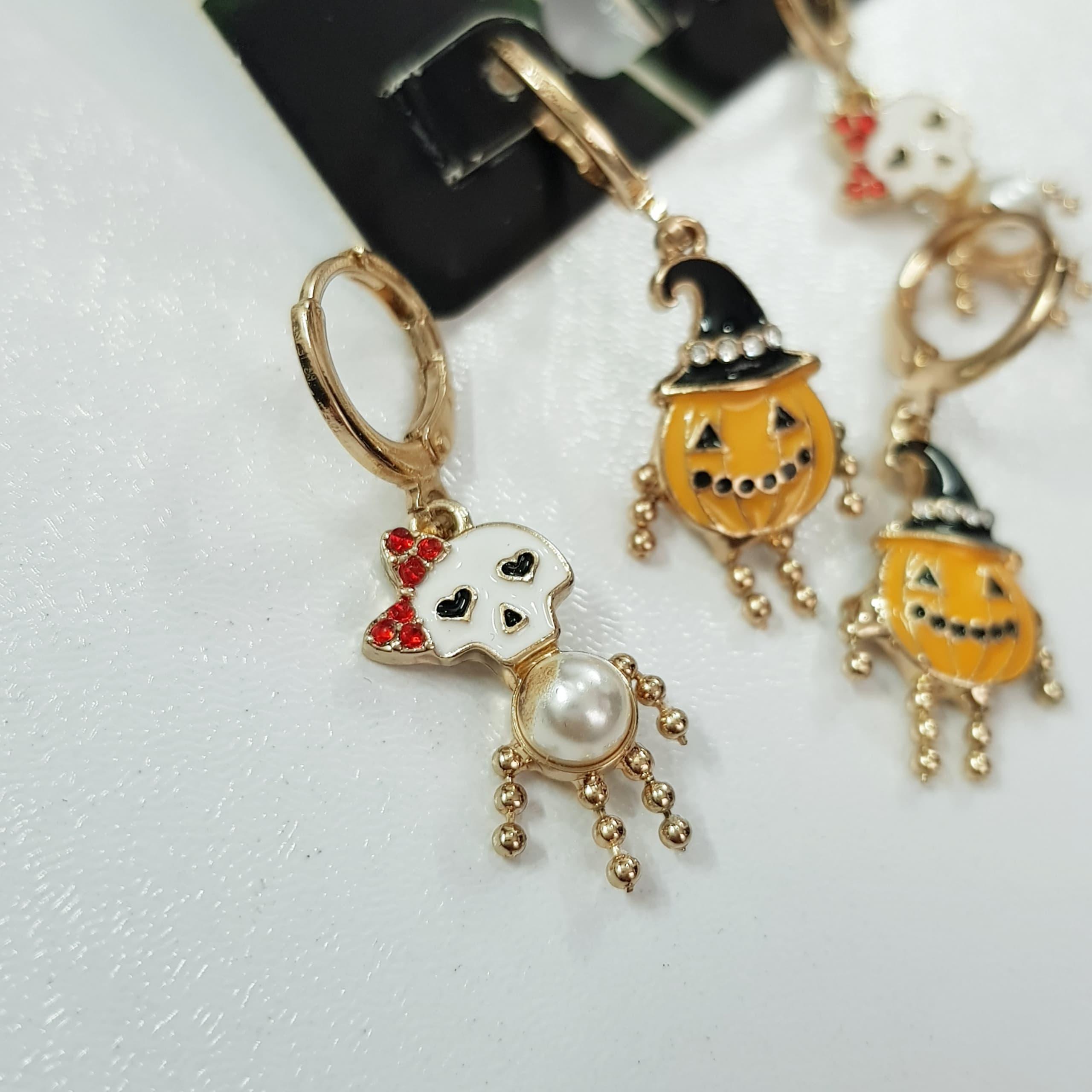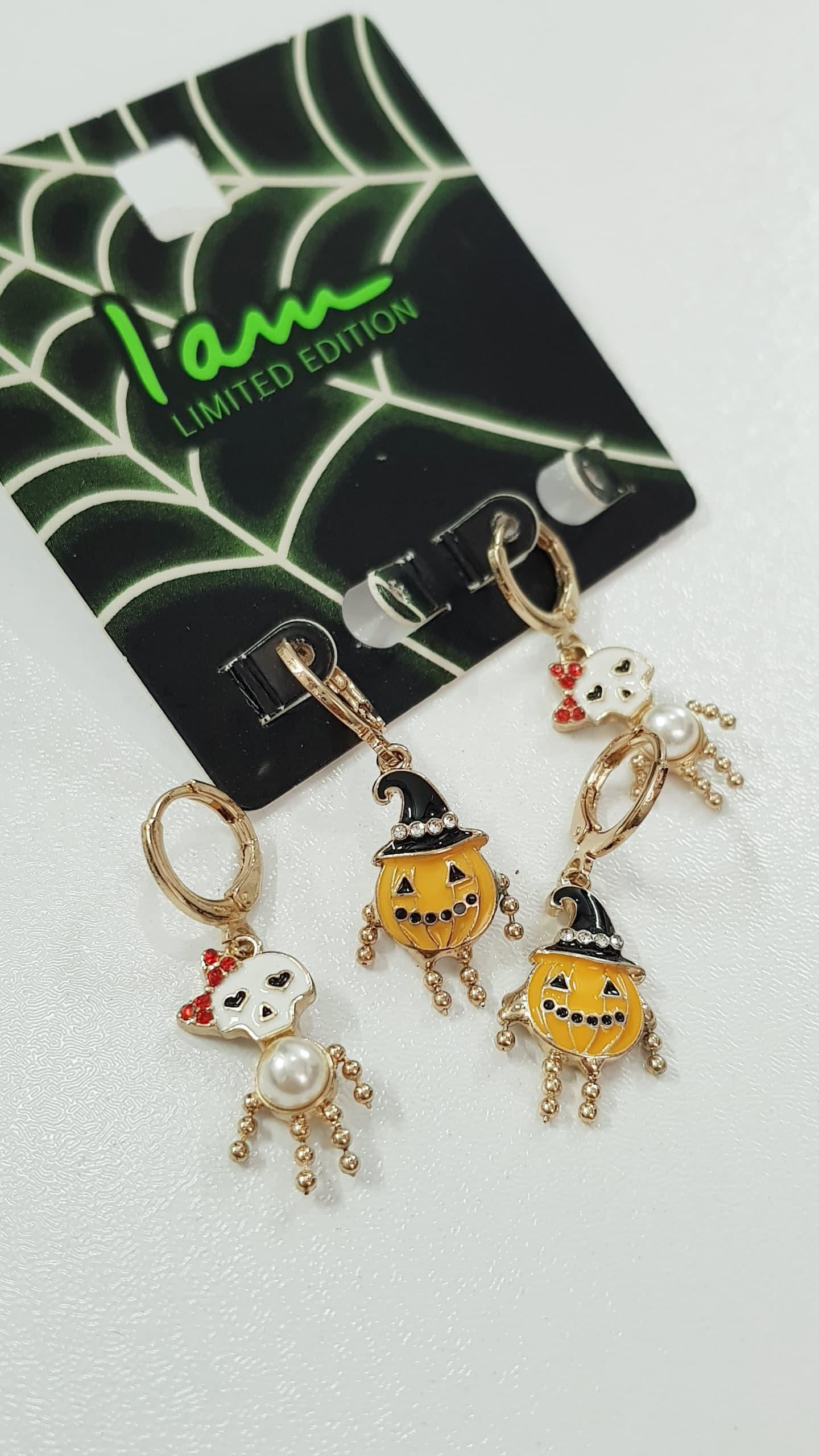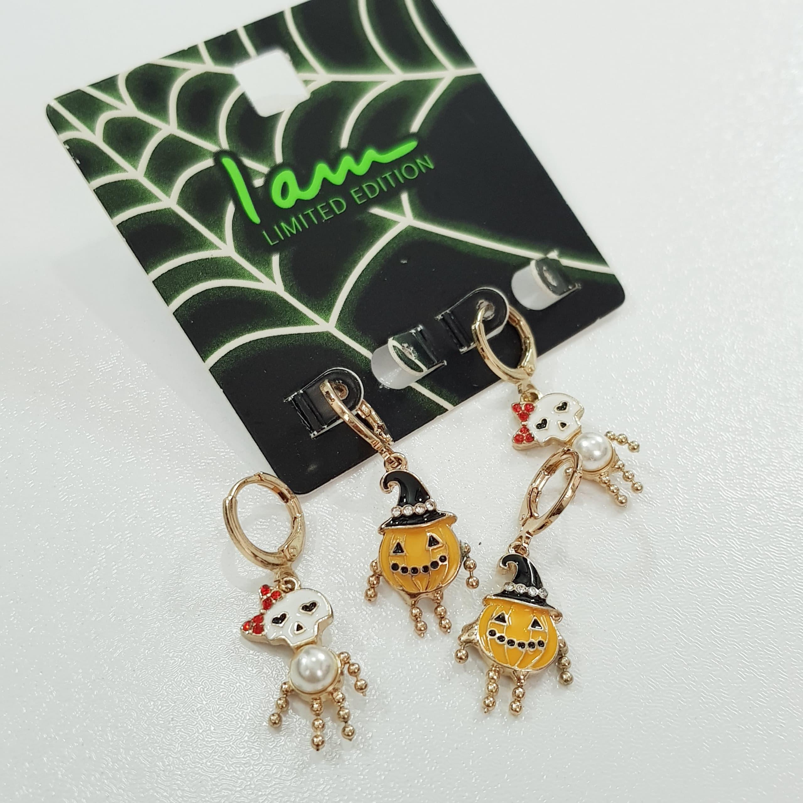 پک دو جفتی گوشواره قفلی آویز کدو تنبل و اسکلت ، کار فوقالعاده زیبا و پر از جزئیات ، از سری لیمیتد ادیشن iam ضد حساسیت برند iam تحت لیسانس آمریکا