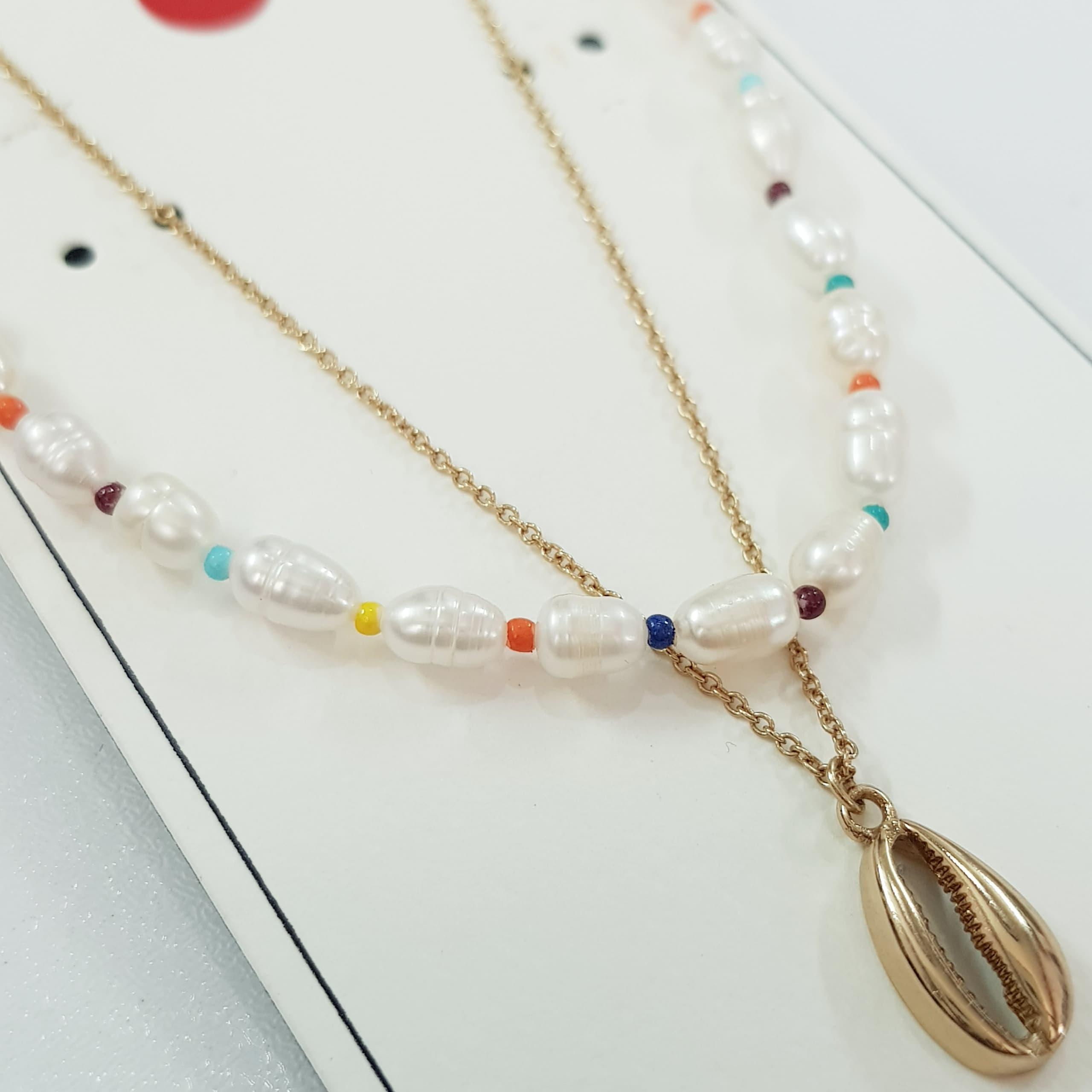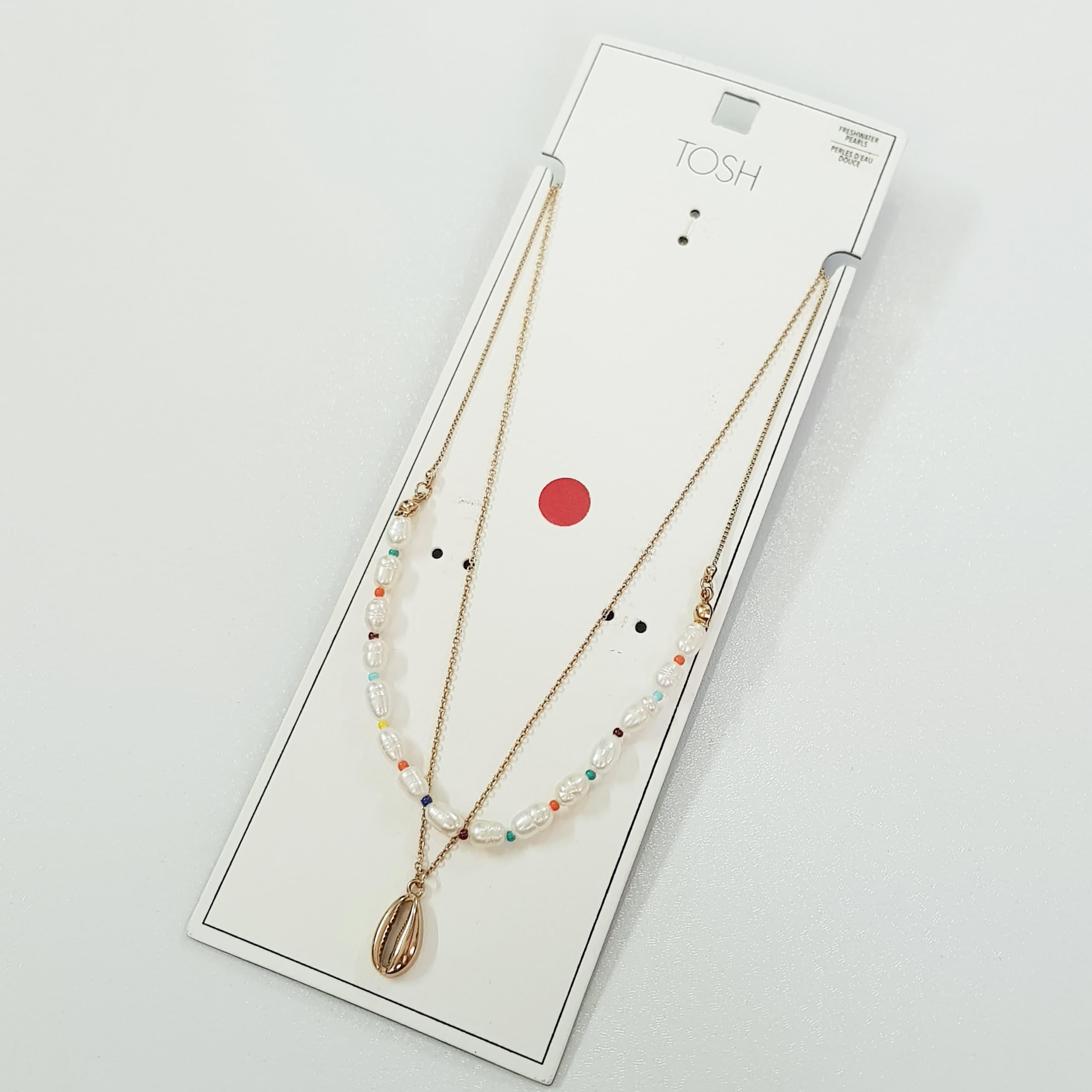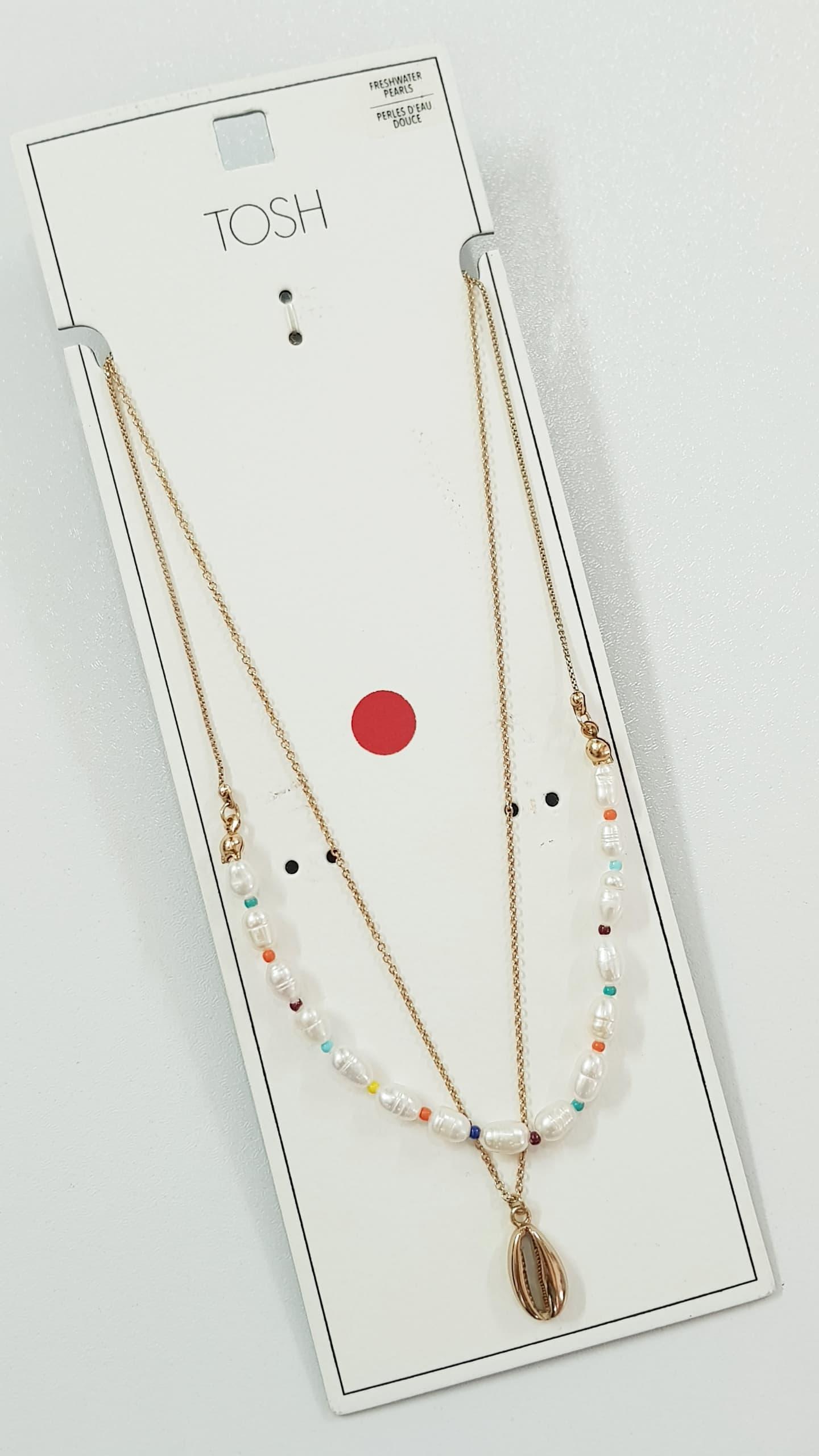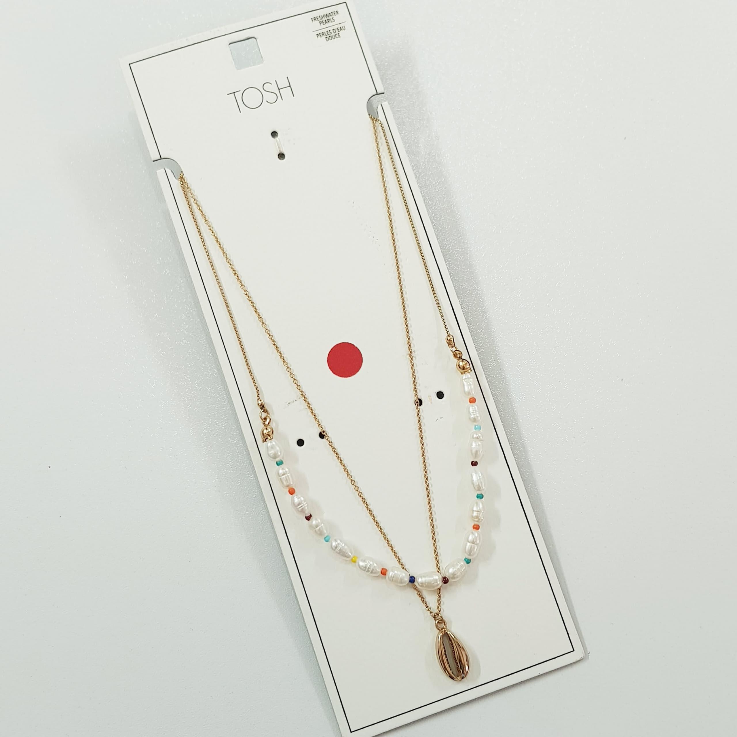 پک دو عددی گردنبند طلایی کار شده با مروارید آب شیرین اصل ، از سری لیمیتد ادیشن TOSH کار بسیار زیبا و درخشان ، دارای دو قفل مجزا ضد حساسیت برند TOSH تحت لیسانس آلمان