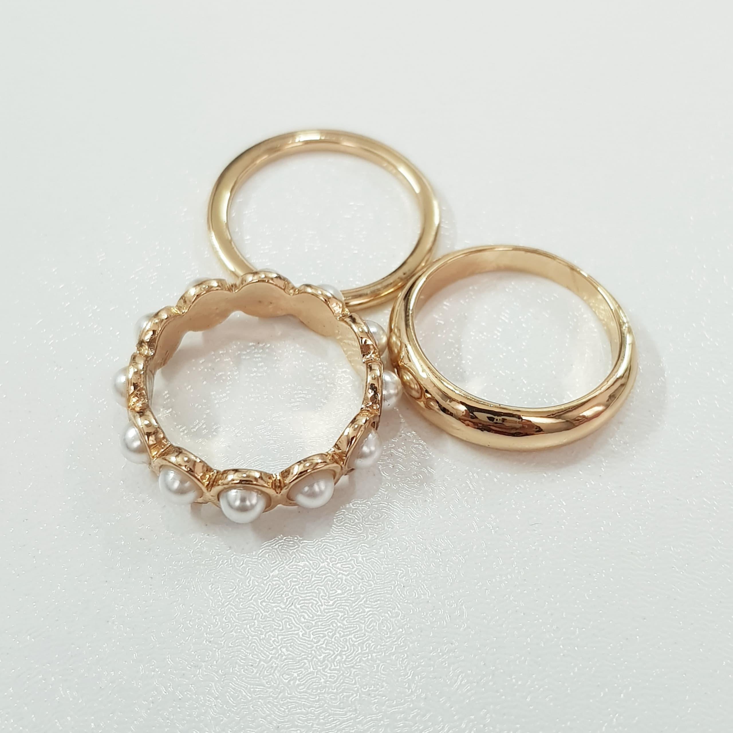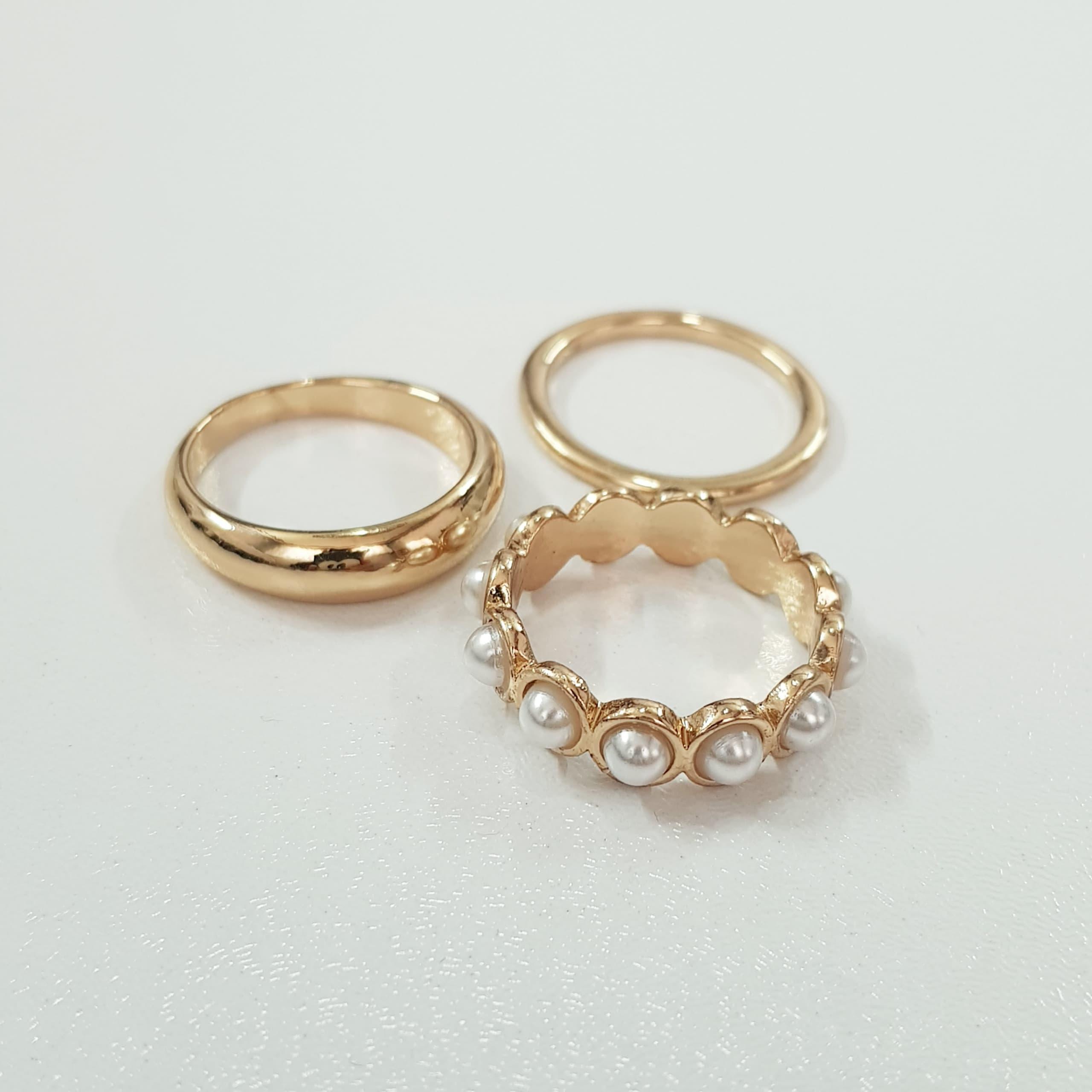 پک سه عددی حلقه طلایی و انگشتر مرواریدی ، کار فوق العاده زیبا و حرفه ای از سری لیمیتد ادیشن اکسسوری ، سایز ۸-۹ ضد حساسیت برند Accessories تحت لیسانس آلمان