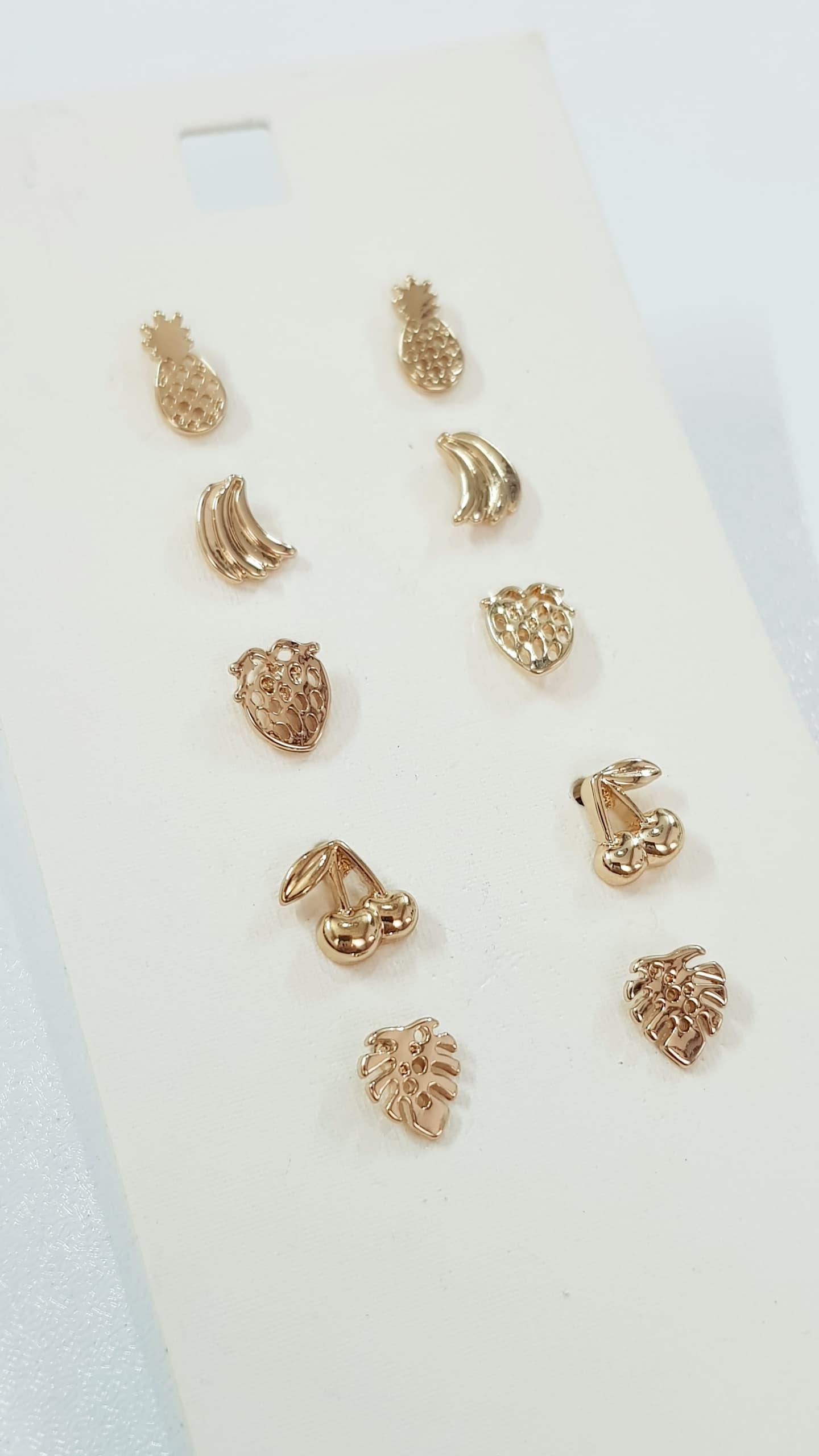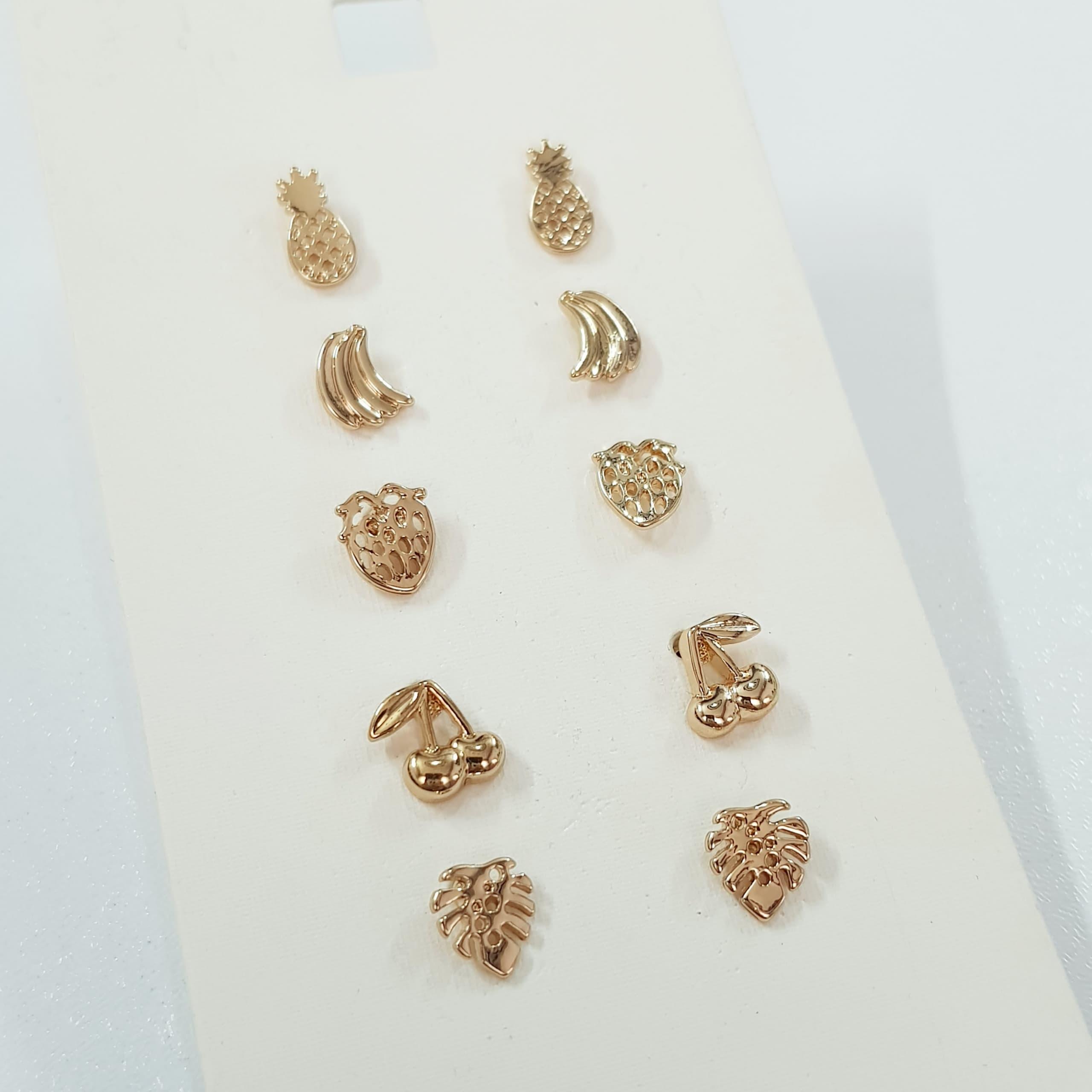 پک پنج جفتی گوشواره گلگوش طرح میوه استوایی برند iam کد ۱۸۰۹۴