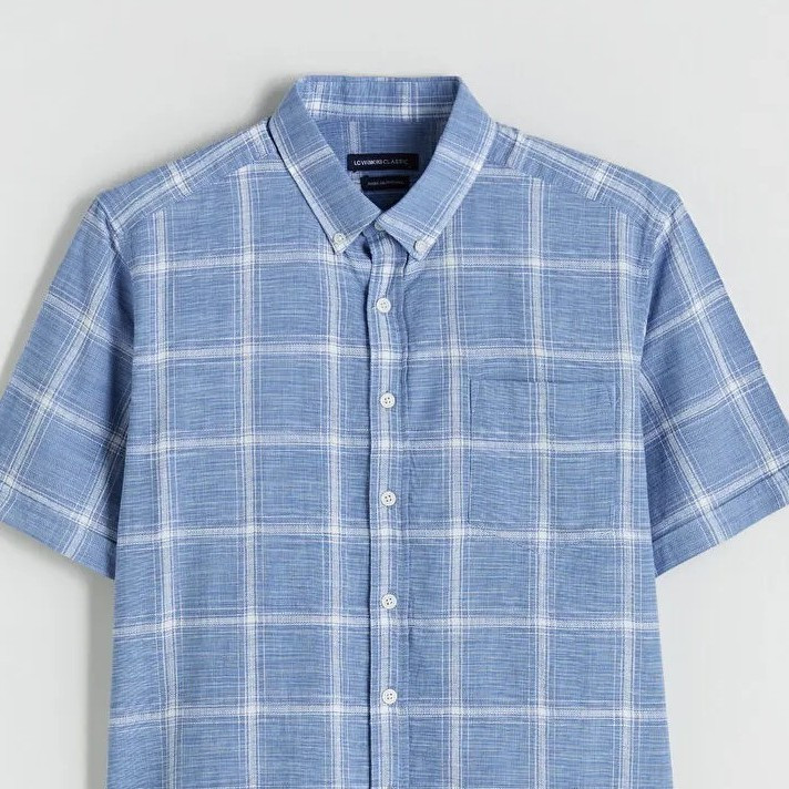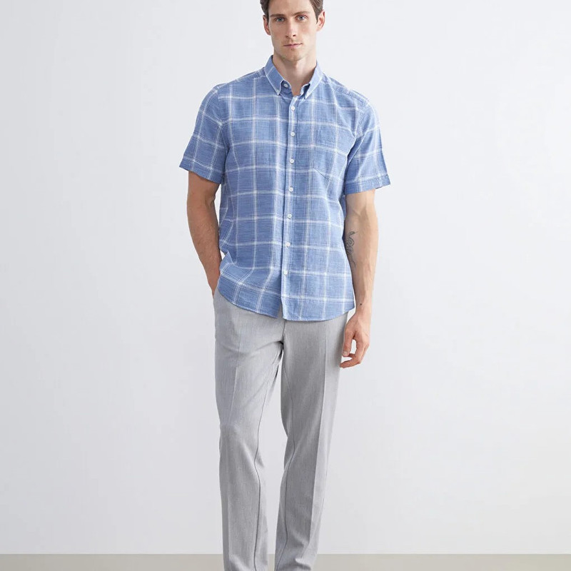 پیراهن آستین کوتاه یقه برگردان مردانه ال سی وایکیکی مدل سوپرپنبه چارخونه