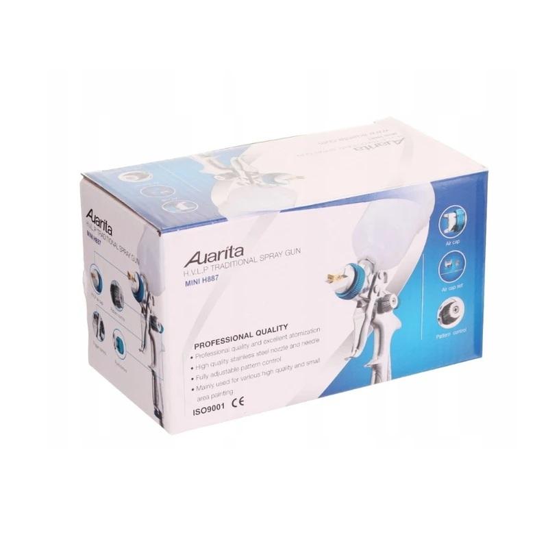 پیستوله سایه پاش آئوریتا مدل 887 یکی از با کیفیت ترین پیستوله های سایه پاش موجود در بازار ایران است و حتی در کشور های همسایه ایران ( ترکیه ، عراق و امارات ) دارای طرفداران زیادی هست . برند آئوریتا نیز یکی از باسابقه ترین کارخانه های تولید ابزار بادی بخصوص پیستوله و در چین می باشد که صادرات زیادی به اروپا و کانادا دارد و مورد تایید نقاشان حرفه ای دنیاست .کارایی پیستوله سایه پاش فقط به پاشش سایه محدود نیست. اگر شما سازنده لوازم تزئینی کوچک باشید، در قسمت رنگ کاری آن نیاز به ابزاری دارید که رنگ را بهصورت کنترل شده و با کمترین مقدار مصرف مواد بر روی سازه اجرا کند. اندازه کوچک پیستوله سایه پاش رنگ کاری بخشهایی از سازه که کوچک است و دسترسی به آن مشکل است را ساده میسازد. مثلاً بهسادگی میتوانید داخل طبقههای کتابخانه چوبی را رنگ کاری کنید. پیستوله سایه پاش این امکان را به شما میدهد که حتی رنگهای مختلفی مانند رنگ روغنی، فوری، سیلر، کیلر، نیم پلی استر را با دقت بالا بپاشید. این مدل سایه پاش آئوریتا مدل فوق حرفه ای مخصوص استاد کاران ماهر می باشد کیفیت نازل و دو شاخ و بدنه این مدل پیستوله سبب شده مورد توجه بسیاری از استاد کاران و نقاشان حرفه ای اتومبیل قرار بگیرد .