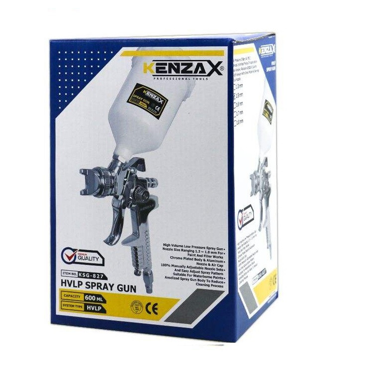 پیستولههای برقی یا بادی ازجملهی وسایلی هستند که از آنها برای نقاشی و رنگآمیزی سطوح مختلف استفاده میشود. استفاده از این ابزار سرعت عمل نقاش را بالا میبرد. البته در خصوص ییستولههای بادی باید در نظر داشت که به یک منبع یا کمپرسور باد احتیاج دارند. یکی از پیستولههای رنگ که توسط شرکت کنزاکس (KENZAX) تولید میشود، مدل KSG-827است. این محصول دارای تنوع در قطر نازل (5/7،1/1 و 1.8) میلیمتر بسته به کاربری میباشد . از جمله مزایای KSG-827 میتوان به کاسه (مخزن) رنگ پلاستیکی شفاف و مقاوم با ظرفیت 600 میلی لیتر اشاره نمود . همچنین بدنه ی آلومینیومی این محصول دارای روکشی از آلیاژ کروم نیکل میباشد که هنگام شستشو در تینر باعث عدم خوردگی آن میگردد. سوزن این محصول از جنس استیل ضد زنگ ، نازل از جنس برنج ساخته شده است. در ساخت این پیستوله کنراکس KSG-827 از تکنولوژی HVLP بهره برداری شده است که با کمترین میزان فشار بیشترین پاشش رنگ را امکان پذیر می نماید . سوزن استیل ضد زنگ که ستفاده شده که باعث عمر بیشتر این پیستوله میشود . همچنین مخزن این مدل 600 میلیلیتر رنگ را در خود جای میدهد. برای استفاده از این محصول باید یک پمپ یا کمپرسور باد داشته باشید. سپس پیستولهی رنگ را با شلنگهای مخصوص به کمپرسور متصل کنید. از مزایای KSG-827 کنزاکس میتوان به دنباله شلنگ خور آن اشاره نمود . مخزن این محصول را با رنگ پر کرده و رنگآمیزی را شروع کنید. به همراه این محصول، چند قطعه لوازم جانبی شامل آچار، فرچهی کوچک و فیلتر قرار دارد که به کمک آنها، میتوانید استفادهی بهتری از پیستوله کرده و آن را به راحتی تمیز کنید. از آچار برای باز کردن قطعات و از فرچهی کوچک برای تمیز کردن قطعات بازشده استفاده میشود. فیلتر کوچک هم برای قرار گرفتن در محل اتصال مخزن به پیستوله در نظر گرفتهشده و از ورود اجسام ریز به داخل پیستوله جلوگیری میکند. شما میتوانید برای سرعت دادن به روند رنگآمیزی، بهجای استفاده از قلمموی رنگ از پیستولهی بادی مانند پیستوله بادی کنزاکس مدل KSG-827استفاده کنید. جنس فلزی بدنه و نازل استیل در این محصول، باعث مقاومت و عمر بسیار بالای آن میشود. مخزن پلاستیکی این محصول حجم مناسبی از رنگ (600 سیسی) را در خود جای میدهد.