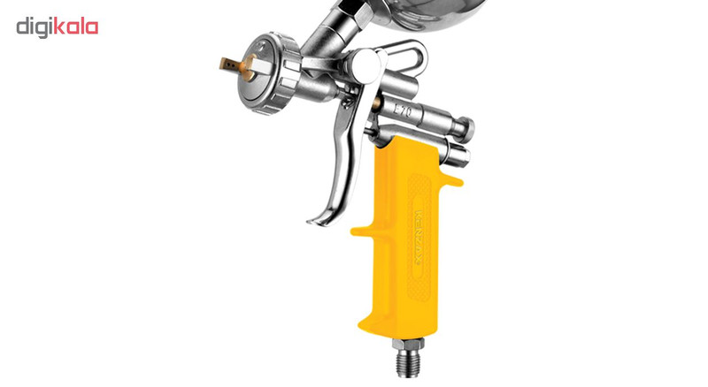 پیستولهها عموما در دو حالت برقی و یا بادی جهت رنگ آمیزی و نقاشی ارائه میشوند. امروزه جهت صرفهجویی دروقت و نیز داشتن رنگ آمیزی یکنواخت، از پیستوله به جای قلممو جهت رنگ آمیزی استفاده میشود. با استفاده از پیستوله نه تنها رنگ آمیزی سریعتر انجام میشود، بلکه در مصرف انرژی کاربر نیز صرفهجویی میشود. باید درنظر داشت که جهت استفاده از پیستولههای بادی وجود یک منبع باد و یا کمپرسور پیش نیاز است. پیستوله بادی کنزاکس مدل “KSG-E70-18”یکی از پیستولههای پرکاربرد از مجموعه پیستولههای KENZAX است. پیستوله رنگ کاسه زیر کنزاکس مجهز به دو تنظیم جهت میزان خروجی و تنظیم پهنای پاشش رنگ میباشد. بدنه ی این محصول از جنس آلومینیوم ریخته گری با روکش سند بلاست و آبکاری شده ، تهیه گردیده است. همچنین دارای دسته ای از جنس پلاستیک با طراحی استاندارد و از مواد درجه یک تهیه شده است. مخزن (کاسه فلزی) این مدل، حجم مناسبی از رنگ ( 600 میلی لیتر) را در خود جای میدهد. به علت افزایش دقت و پاشش یکنواخت و نیز افزایش عمر پیستوله، از نازل (دهانه) با جنس برنج در این پیستوله استفاده شده است. سایز نازل و سوزن نصب شده در این پیستوله 1.8 میلیمتر میباشد . همچنین این کالا با نازل 1.6 نیز موجود میباشد . تا کاربر بر اساس نیاز و نوع پاشش رنگ از سوزن و نازل متناسب با درخواست خود استفاده نماید. جهت اتصال این پیستوله به شلنگ فنری، یک عدد مهره و دنباله نیز در داخل بسته بندی این دستگاه نیز وجود دارد.