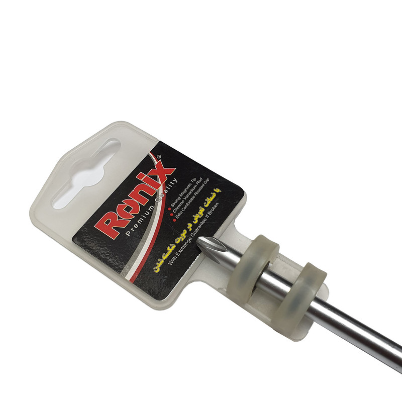 پیچ گوشتی چهارسو رونیکس مدل PH3X150mm از جنس فولاد کروم-وانادیوم ساخته شده و با روکش کروم پوشانده شده است. این پیچ گوشتی سایز 150 × 8، دارای یک دستهی ارگونومیک قدرتمند از جنس PVC است که در کاربری های متنوع، کمکحال شما خواهد بود. میله فلزی آن دارای قطر 8 میلیمتر و دسته آن قطر 30 میلیمتر می باشد. نوک پیچ گوشتی در قیسمت پیچ گیر دارای قطر درونی 3 میلیمتر می باشد.