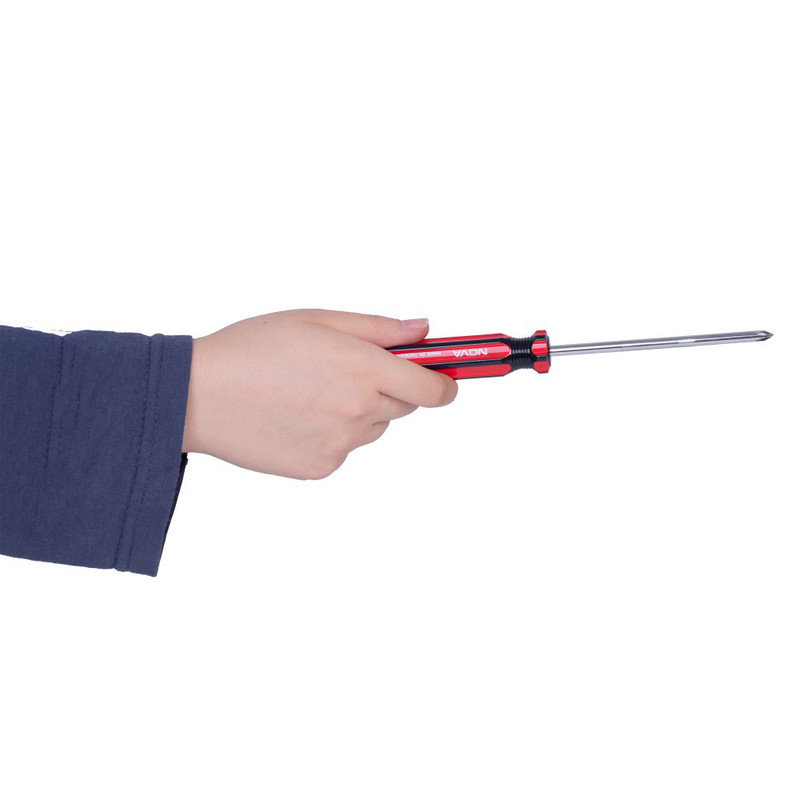 پیچ گوشتی نووا مدل NTS1724 یک پیچ گوشتی چهارسو با سایز 5 میلیمتری است. میلهی این پیچ گوشتی از جنس کروم وانادیوم مرغوب ساخته شده و حرارت دهی شده و سخت کاری شده تا مقاومت آن بالاتر رود. سری میله برای راحتی کار شما، به صورت آهنربایی ساخته شده است و تمام میله و سری میله برای افزایش کارایی، پولیش شده با روکش آیینه ای است. طول این میله برابر با 100 میلیمتر است و سری میله به صورت دقیق و مقاوم ساخته شده است. این پیچ گوشتی چهارسو مجهز به دستهی شش گوش با تحمل بیشترین گشتاور است که از جنس متریال سلولزی تولید شده است. طول این دسته بزرگ برابر با 80 میلیمتر است و به صورت ضد ضربه و ارگونومیک طراحی شده است.