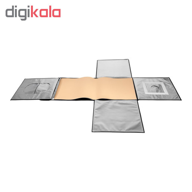 ساختار اتاق نور به نحوی است که با توزیع یکنواخت نور توسط مجموعه ای از لامپ های SMD و هدایت نور توسط دیواره هایی از جنس پارچه مخصوص انعکاس دهنده نور،تمامی زاویه های محصول شما را نوردهی می کند و به دلیل قرار گرفتن محصول در محیطی بسته تصویر نهایی شما ، با نور صحیح و بدون هیچ انعکاسی می باشد.همچنین به دلیل توزیع بکنواخت نور در کل محیط در صورت عکاسی بر روی پس زمینه سفید نیاز به استفاده از هیچ نرم افزاری برای برش تصویر نیست و همانطور که در نمونه عکس ها مشاهده می کنید به راحتی می توانید عکسی متفاوت از محصول مورد نظر خود داشته باشید.
