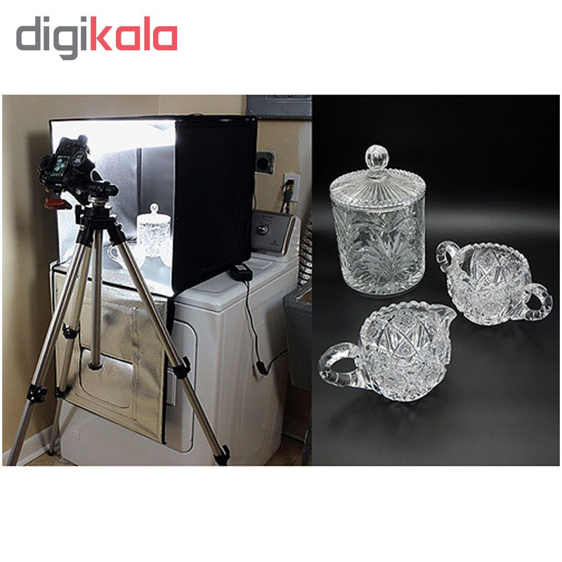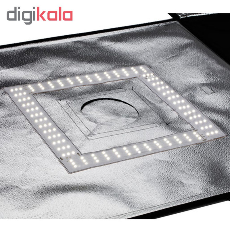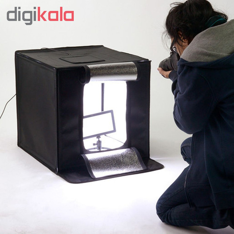 ساختار اتاق نور به نحوی است که با توزیع یکنواخت نور توسط مجموعه ای از لامپ های SMD و هدایت نور توسط دیواره هایی از جنس پارچه مخصوص انعکاس دهنده نور،تمامی زاویه های محصول شما را نوردهی می کند و به دلیل قرار گرفتن محصول در محیطی بسته تصویر نهایی شما ، با نور صحیح و بدون هیچ انعکاسی می باشد.همچنین به دلیل توزیع بکنواخت نور در کل محیط در صورت عکاسی بر روی پس زمینه سفید نیاز به استفاده از هیچ نرم افزاری برای برش تصویر نیست و همانطور که در نمونه عکس ها مشاهده می کنید به راحتی می توانید عکسی متفاوت از محصول مورد نظر خود داشته باشید.