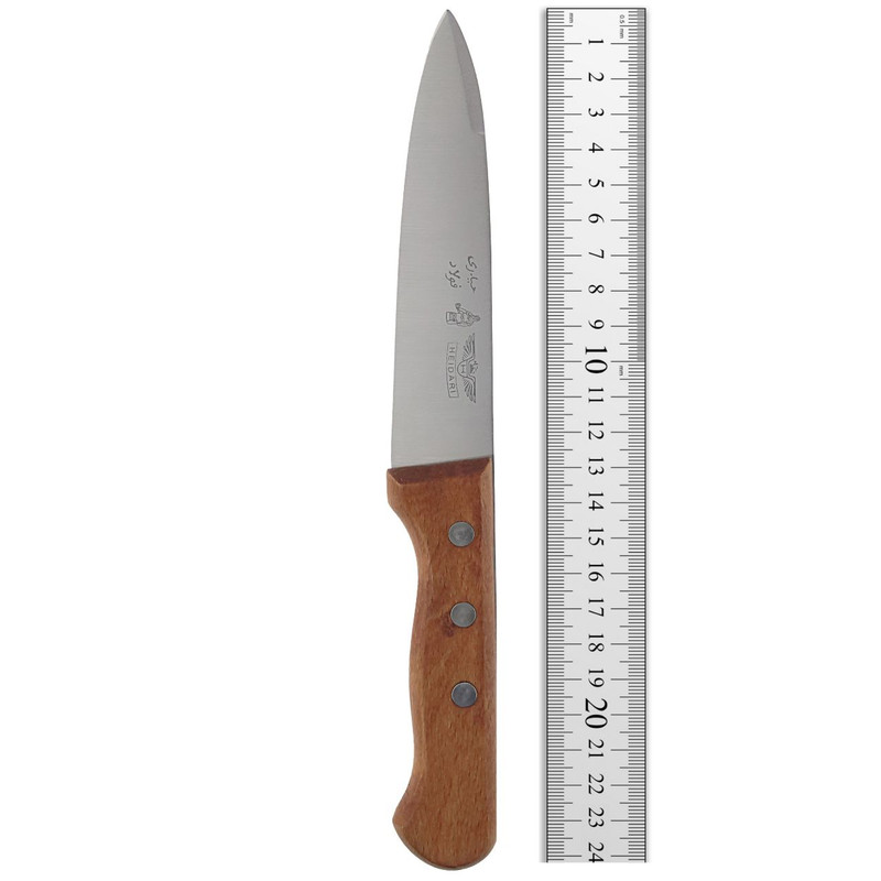چاقو های آشپزخانه بر اساس سایزی که دارند نام گذاری میشوند. این سایز چاقو سایز متوسط میباشد که اصطلاحأ به آن چاقو دم دستی 6 میگویند.این چاقو برای مصارف گوناگون در آشپزخانه مانند پوست کندن،خورد کردن،برش دادن و… بسیار مناسب میباشد. تیغه ی این چاقو از جنس استیل فولاد است .