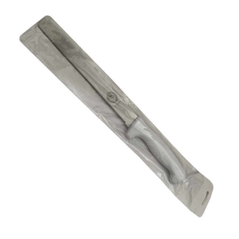 چاقو اره ای مناسب برش انواع کیک، نان و... برند BARNSWALLOW ساخت چین بوده و از کیفیت بسیار خوبی برخوردار می باشد. طول این چاقو اره ای 39 سانتی متر بوده که 14 سانت از آن شامل دسته چاقو و 25 سانت آن چاقو اره ای می باشد. جنس این چاقو استنلس استیل است.