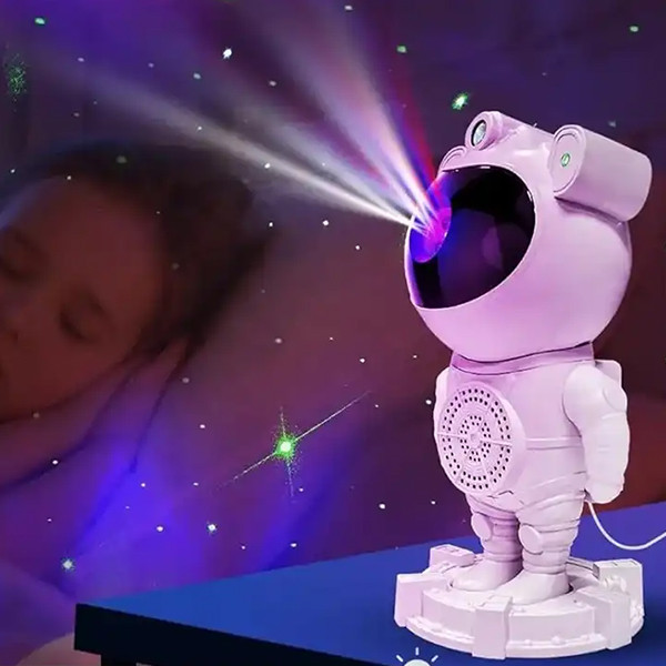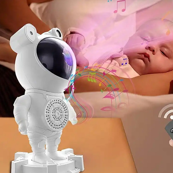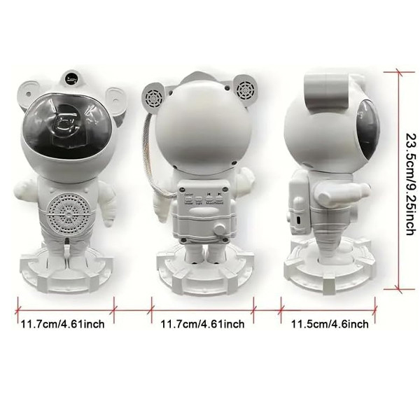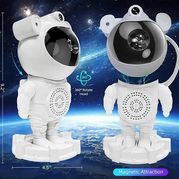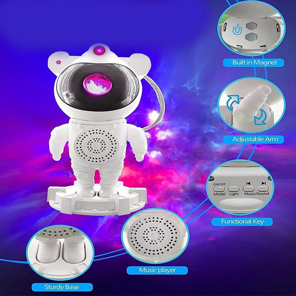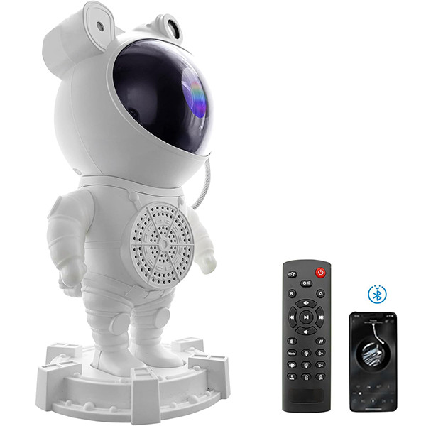 چراغ خواب و اسپیکر مدل کهکشانی آدم فضایی ایستاده کد 532 علاوه بر رقص نور و پروژکتور بودن دارای اسپیکر است که توسط بلوتوث به تلفن همراه وصل میشود و میتوانید به موسیقی، پادکست و کتابهای صوتی مورد علاقه خود با کیفیت صدای عالی گوش دهید و همچنین دارای حالت های افکت های صوتی مختلف(صدای جنگل و حیوانات,صدای آب,صدای آتیش )میباشد که گوش دادن آن ها قبل از خواب باعث آرامش اعصاب و ذهن و راحتی خواب شما میشود .سر و بدن فضانورد به صورت مغناطیسی به هم متصل هستند که می توانند 360 درجه بچرخند .علاوه بر این، پایه ماه قابل جدا شدن است و بازوها نیز می توانند تاب بخورند.می توانید آن را در حالت های مختلف قرار دهید.چراغ خواب و اسپیکر مدل کهکشانی آدم فضایی ایستاده دارای عملکرد تایمر است، می توانید تایمر را تنظیم کنید، در این حالت، زمانی که زیر ستاره ها به خواب می روید، پروژکتور به طور خودکار خاموش می شود. هنگام اجرا هیچ صدایی وجود ندارد و به شما یا فرزندتان اجازه می دهد راحت بخوابید.این محصول را میتوانید هم به صورت دستی با فشار دادن دکمه در پشت محصول خاموش و روشن کنید و هم با کنترل از راه دور خاموش و روشن و تغییر مود دهید ( به وسیله کنترل از راه دور می توانید رنگ ها، سرعت و روشنایی سحابی و ستاره و همچنین سوئیچ تایمر را تنظیم کند (45 دقیقه یا 90 دقیقه ) به طور خودکار خاموش می شود).این پروژکتور دارای 4 رنگ اصلی نور (آبی، سفید، قرمز و سبز) با قابلیت ترکیب برای ایجاد 10 رنگ منحصر به فرد است و در زمان روشن بودن علاوه بر نور و ستاره ، تصویری زیبا از ماه را نیز برروی دیواری ایجاد میکند .همراه محصول کابل شارژ ارسال میشود .