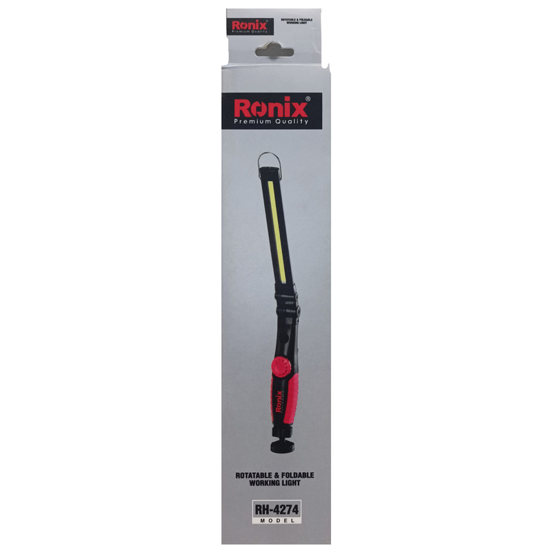چراغ کار شارژی RH-4274 رونیکس، تاشو بوده و جای کمی را اشغال میکند؛ پایه مگنتی این محصول روی سطوح فلزی میچسبد؛ شدت روشنایی آن قابل تنظیم بوده و برای نوردهی خانه، فضای باز، تعمیر خودرو، کمپینگ و کار بر روی وسایل الکترونیکی طراحی شده است.