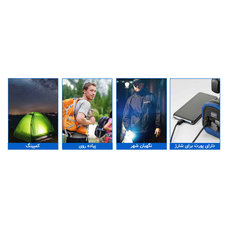 | سایر توضیحات | 7حالت مختلف روشنایی با دومنبع نور مجزا تغییر جهت دسته چراغ قوه در دو حالت ، امکان استفاده بصورت آویز ، قابلیت نصب روی پایه دوربین منبع نور قوی 10وات با شدت روشنایی 1000 لومن امکان روشنایی تا فاصله 400 متر دارای نشانگر وضعیت شارژ باتری گیره آویز و کابل شارژ داخل بسته بندی |