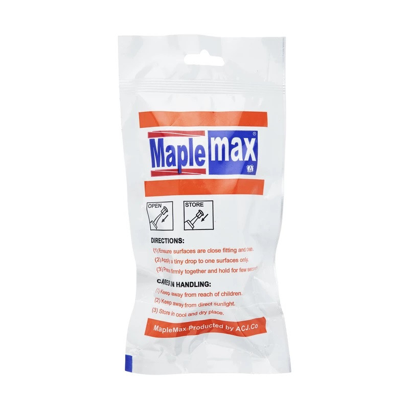 چسب قطره ای مپل مکس maple max یک چسب هوازی به شمار میآید که بر پایه سیانو اکریلات میباشد این خاصیت به این معنی است که فقط و فقط در صورت حضور هوا و رطوبت آن به استحکام نهایی میرسد.از آن می شود برای چسباندن انواع وسایل خانگی، صنعتی، چوبی، پی وی سی و… بهره برد و خدمات خوبی را از این محصول دریافت کرد. این محصول به صورت یک جزئی در بازار عرضه میشود که بدون نیاز به هیچ گونه اکتیویتور یا کاتالیزور و یا ابزار خاصی می تواند با قدرت چسبندگی بالا و قابلیت سریع برای خشک شدن خدمات خوبی را به کاربر ارائه دهد. چسب قطره ای مپل مکس می تواند برای سطوح دیگری مانند سنگ ها، سرامیک، فلزات، قطعات الکتریکی، سطوح چوبی، چینی، پلاستیک.