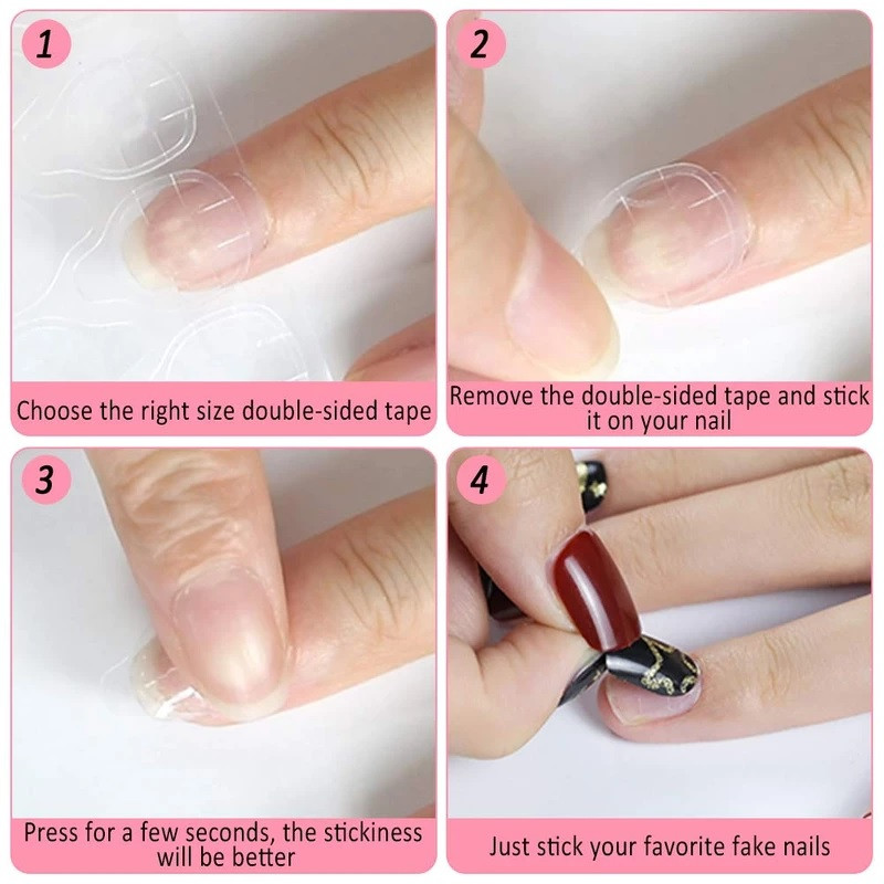 انتخاب چسب ناخن با کیفیت، مرغوب و خوب بسیار اهمیت دارد. در صورت بهداشتی نبودن چسب ناخن می تواند باعث ایجاد عفونت شود. همچنین چسبی خوب است که هم ناخن ها را خوب نگه دارد و هم در هنگام برداشتن ناخن مصنوعی به بافت ناخن طبیعی آسیب نزند. چسب ورقه ای ژله ای را براحتی روی ناخن فشار دهید و استفاده نمایید. تعداد و شکل ورقه ها از روی تصویر کاملا نمایان است.