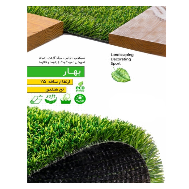 | سایر توضیحات | چمن مصنوعی مدل بهاری با الیاف هلندی و ارتفاع ساقه 25 میلی متر |