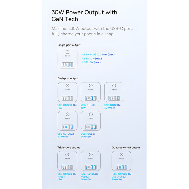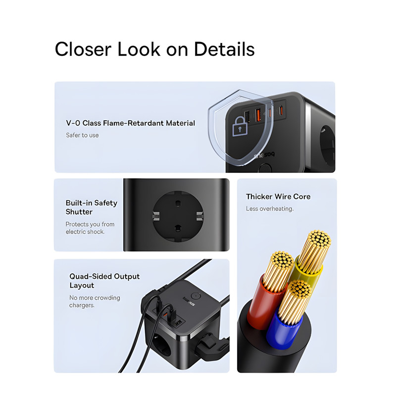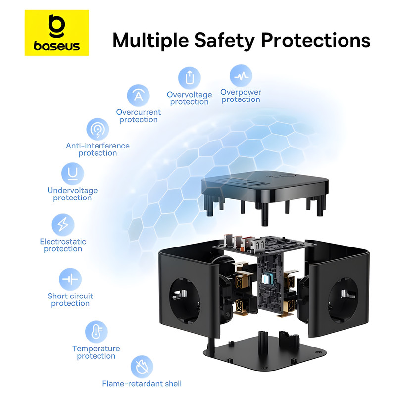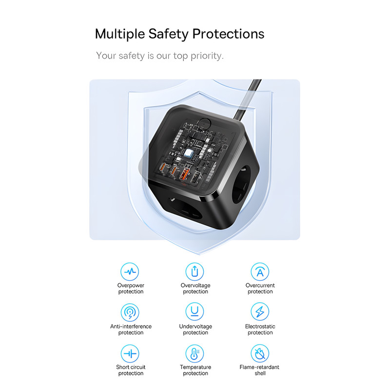| سایر توضیحات | کالای اورجینال بیسوس، واردات انحصاری تیم تکنیک تل | حداکثر توان خروجی شارژ 30 وات | دارای 10 لایه محافظتی | نوع دوشاخه EU / ایرانی | دارای 3 پریز برق + 2 تایپ سی + 2 USB |