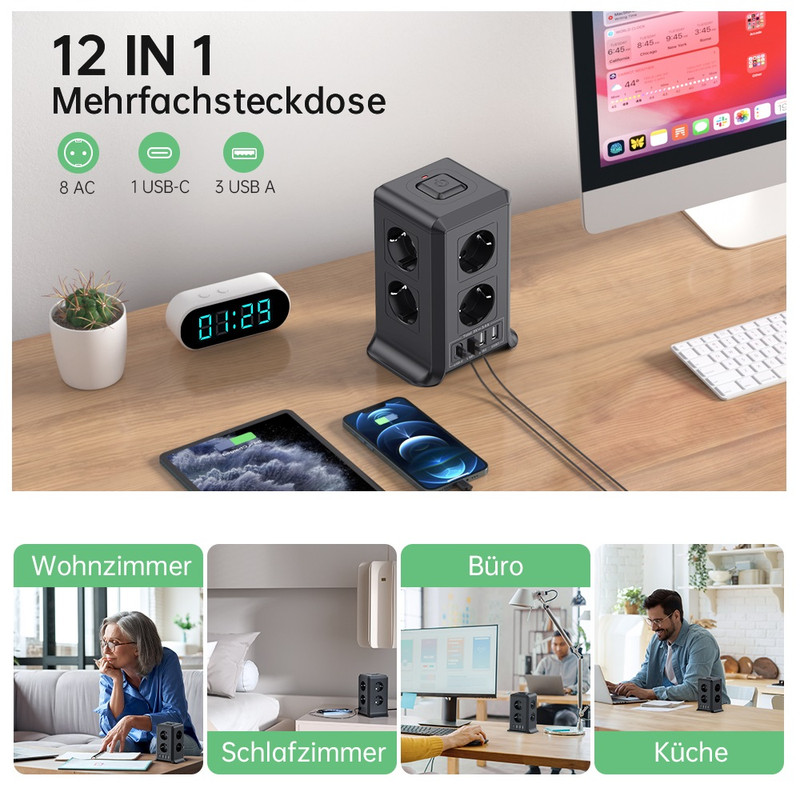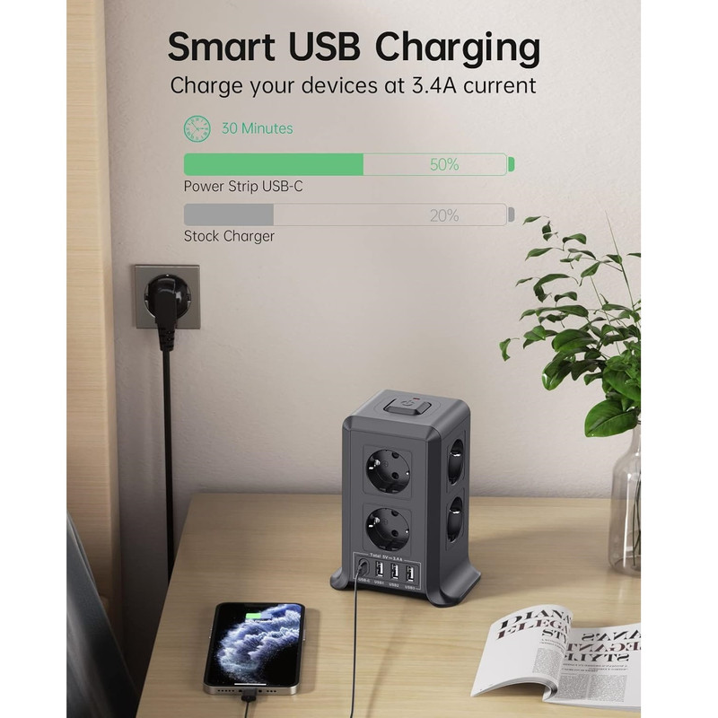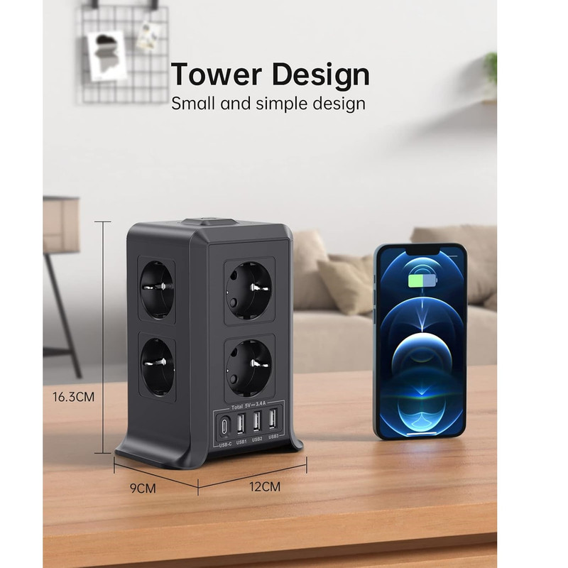 | سایر توضیحات | کابل افزایش طول ۵ متری، چندراهی برق، محافظ ولتاژ، پریز برق ۸ پورته با ۴ پورت USB، پریز برق چند شاخه با ۴ کلید، پریز برق ایستاده برای منزل چندراهی برق ۱۲ در ۱: این چندراهی برق مجهز به ۳ پورت USB-A (5 ولت/۲.۴ آمپر) و ۱ پورت USB-C (5 ولت/۳.۱ آمپر) برای شارژ سریع چندین دستگاه، و ۸ پریز برق AC است که از حداکثر توان خروجی ۲۵۰۰ وات/۱۰ آمپر پشتیبانی میکند. ایمن و قابل اعتماد: این کابل رابط محافظتشده در برابر نوسانات برق، دارای محافظت در برابر نوسانات برق تا ۱۷۰۰ ژول و محافظت در برابر اضافه بار است که هنگام استفاده از این دکل برق برای لوازم خانگی با توان بالا یا دستگاههای برقی و غیره، ایمنی را تضمین میکند. چندراهی برق با کلید: چندراهی برق دارای یک کلید است، برای خاموش کردن منبع تغذیه فقط کافی است کلید را فشار دهید. این کار باعث صرفهجویی در مصرف برق میشود و نیازی به وصل کردن یا جدا کردن دوشاخه نیست. 【توجه】 این کلید پورت ورودی USB را کنترل نمیکند. محافظت در برابر نوسانات برق در چندین پریز: پریز برق چندکاره با USB دارای گواهینامه CE و RoHS است و از مواد پیشرفته ضد حریق استفاده میکند. هنگامی که منبع تغذیه بیش از حد بارگذاری/بیش از حد گرم/اتصال کوتاه میشود، سوئیچ اضافه بار قابل اعتماد به طور خودکار فعال میشود تا از دستگاههای شما محافظت کند. کابل افزایش طول ۵ متری: با محافظ نوسان برق چندراهی با کابل افزایش طول ۵ متری، میتوانید به راحتی از سر دیگر مبل عبور کنید. این چندراهیهای برق دارای طراحی برجی شکل هستند که برای اتاق نشیمن، اتاق خواب، میز کامپیوتر، فضای اداری و غیره مناسب هستند. پریز چندگانه سامریور چندراهیهای برق Sameriver با ۸ پریز و ۳ پورت USB A+1 پورت USB C. ایدهآل برای استفاده در خانه، محل کار یا مدرسه، که ایمنی دستگاههای شما را تضمین میکند. این چندراهی برق یک کلید دارد، فقط کافی است کلید را فشار دهید تا منبع تغذیه خاموش شود. این کار باعث صرفهجویی در مصرف برق میشود و نیازی به وصل کردن یا جدا کردن دوشاخه نیست. توجه: این کلید پورت ورودی USB را کنترل نمیکند! چندپریز با محافظت در برابر نوسانات برق: محافظ چندراهی برق ۱۷۰۰J میتواند دستگاههای الکترونیکی شما را از نوسانات ناگهانی و افزایش ناگهانی ولتاژ محافظت کند. لطفاً قبل از استفاده، توان و جریان نامی دستگاهها را بررسی کنید. مطمئن شوید که توان تمام دستگاههای مورد استفاده در پریز نمیتواند بیش از ۲۵۰۰ وات باشد. |