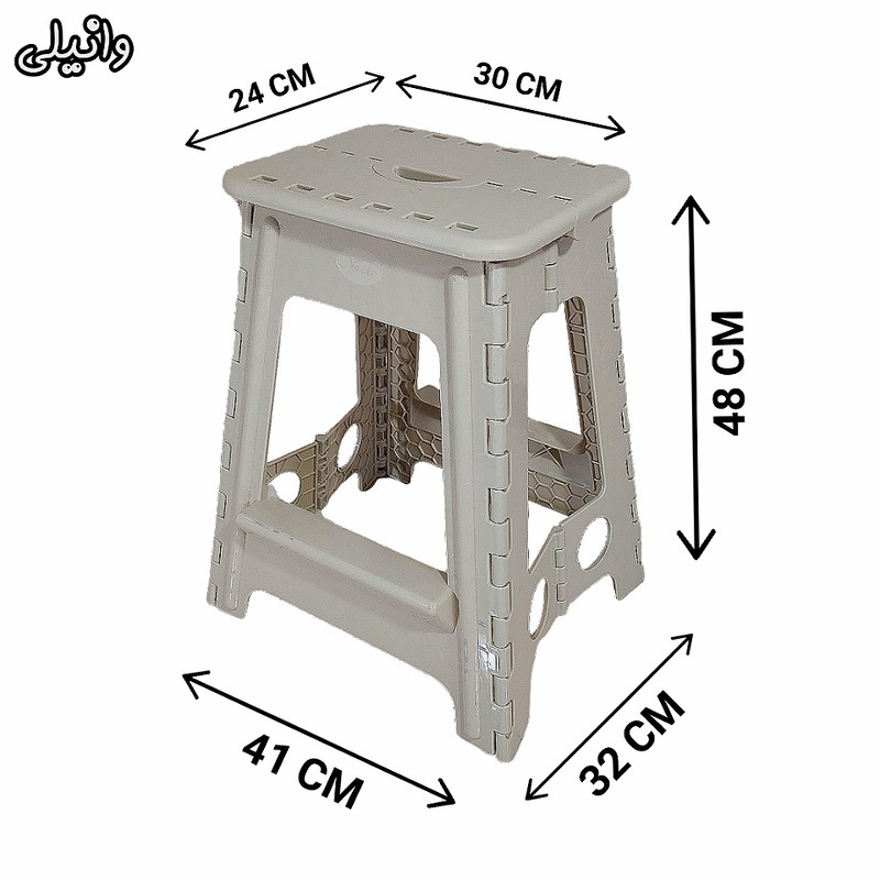 ابعاد : طول 41 x عرض 32 x ارتفاع 48 سانتیمتر و ابعاد محل نشیمن صندلی طول 30 x عرض 24 سانتیمتر است.
