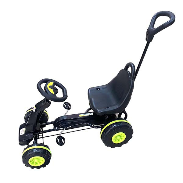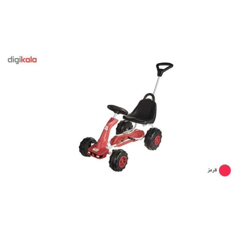 ماشین چهار چرخ بیبی لند تاب کار با اسکلت فلزی دارای اهرم کنترل فرمان و تحمل وزن تا 70 کیلو وهمچنین پدال برای حرکت با استفاده از زنجیر وتنوع رنگ آبی ، قرمز ، مشکی